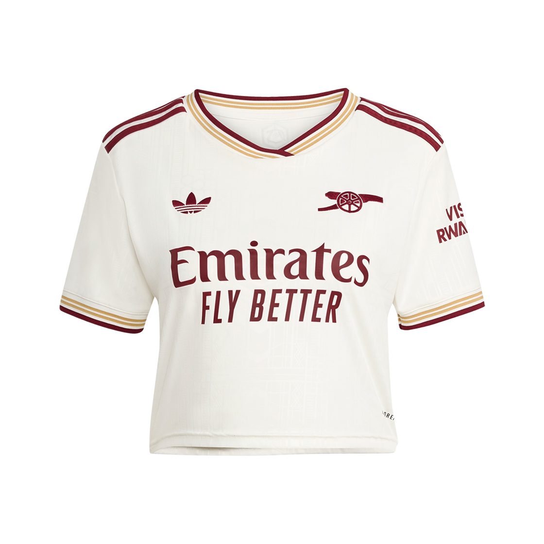 (W) Adidas Arsenal 2025/26 Cropped TF Jersey Cloud White Team Coll Burgundy 2 - US Sizing