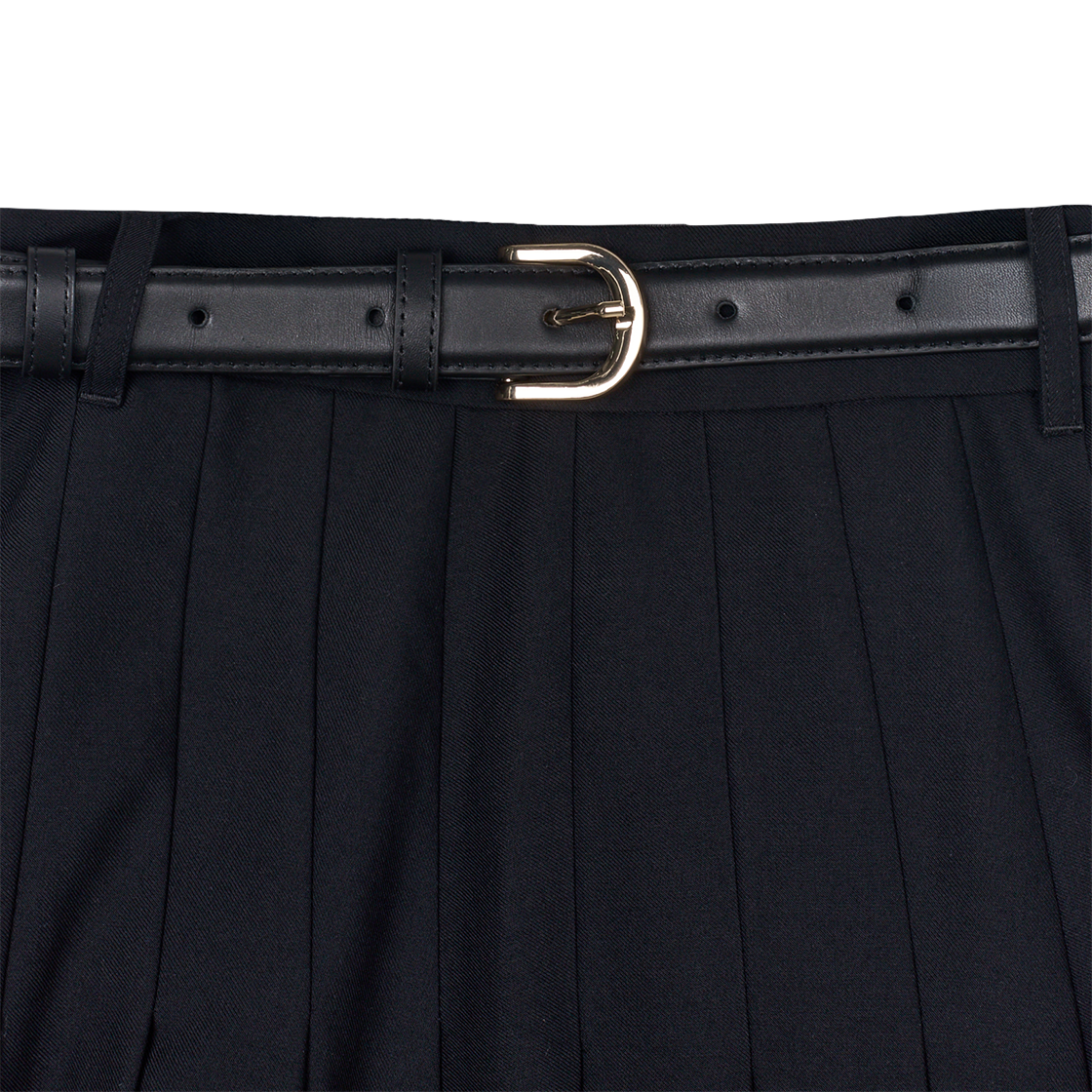 셀프 포트레이트 우먼 플리티드 트윌 미디 스커트 블랙- 25FW