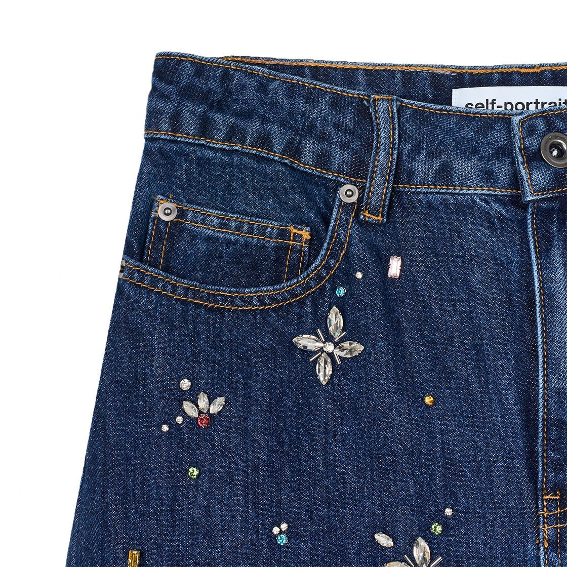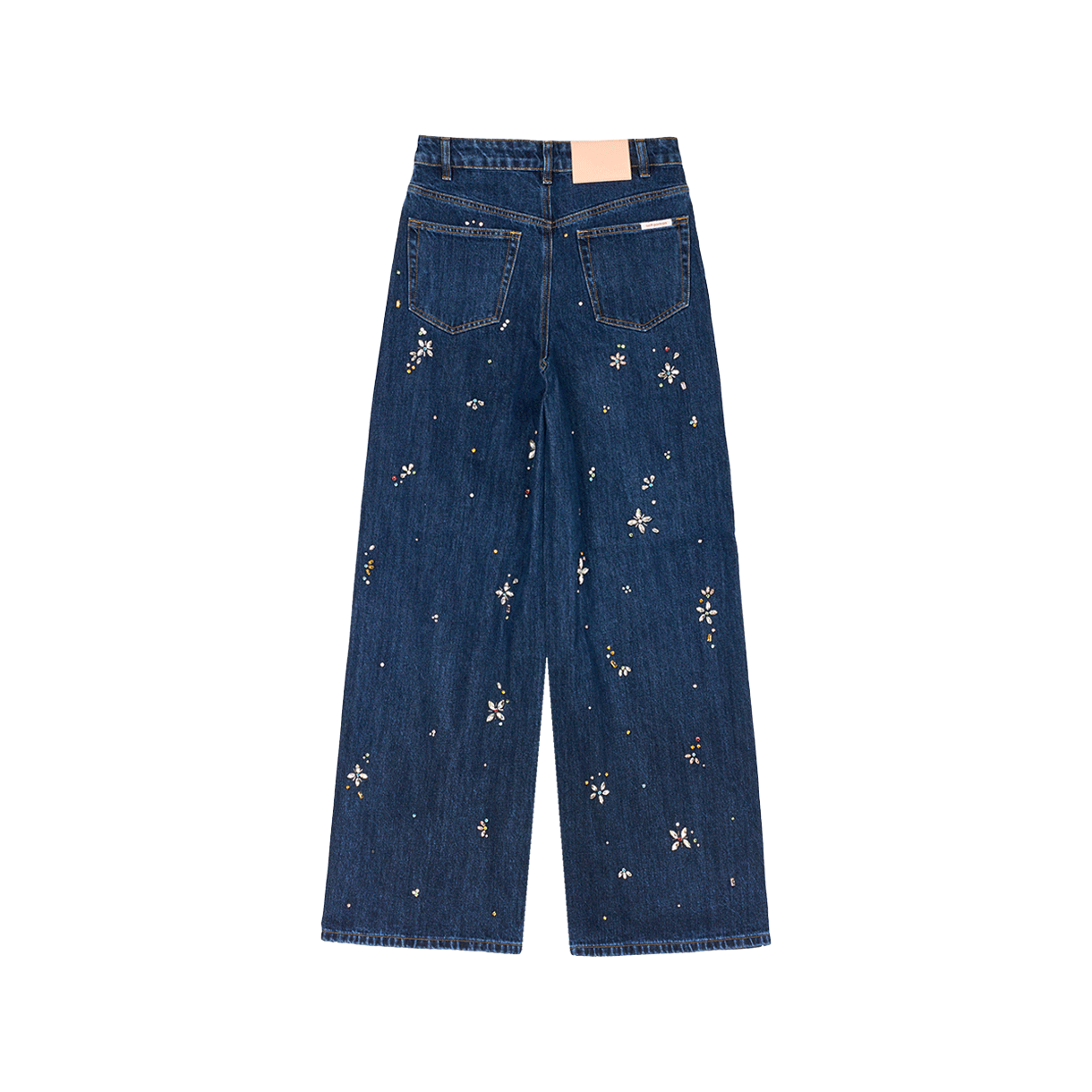 셀프 포트레이트 우먼 엠벨리시드 와이드 레그 진스 블루- 25FW