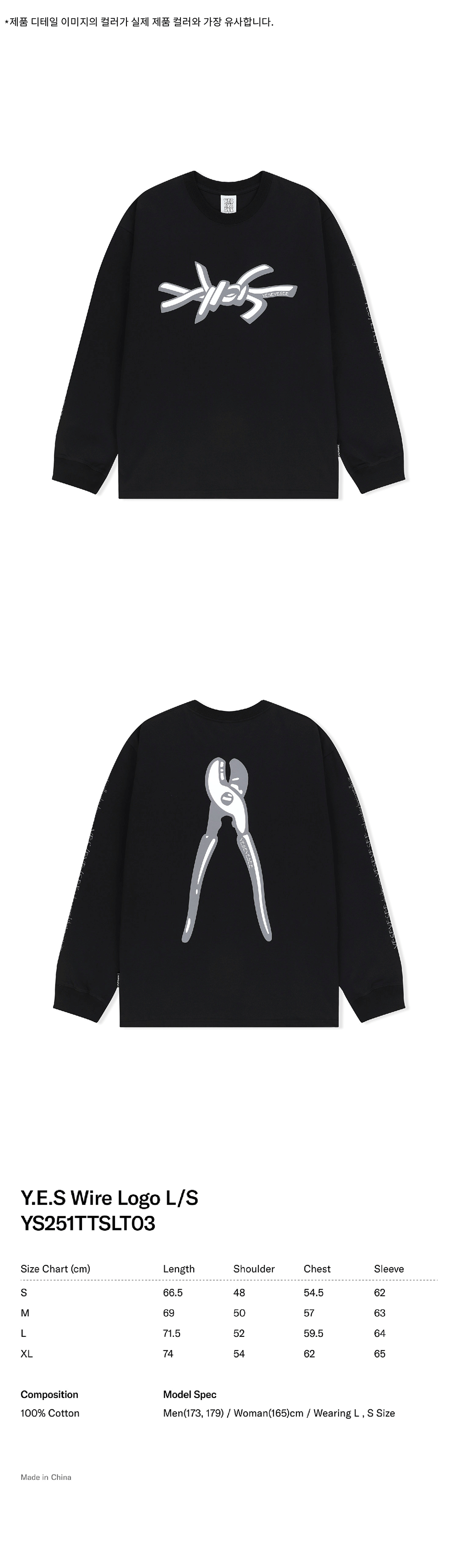 예스아이씨 예스 와이어 로고 긴팔 블랙