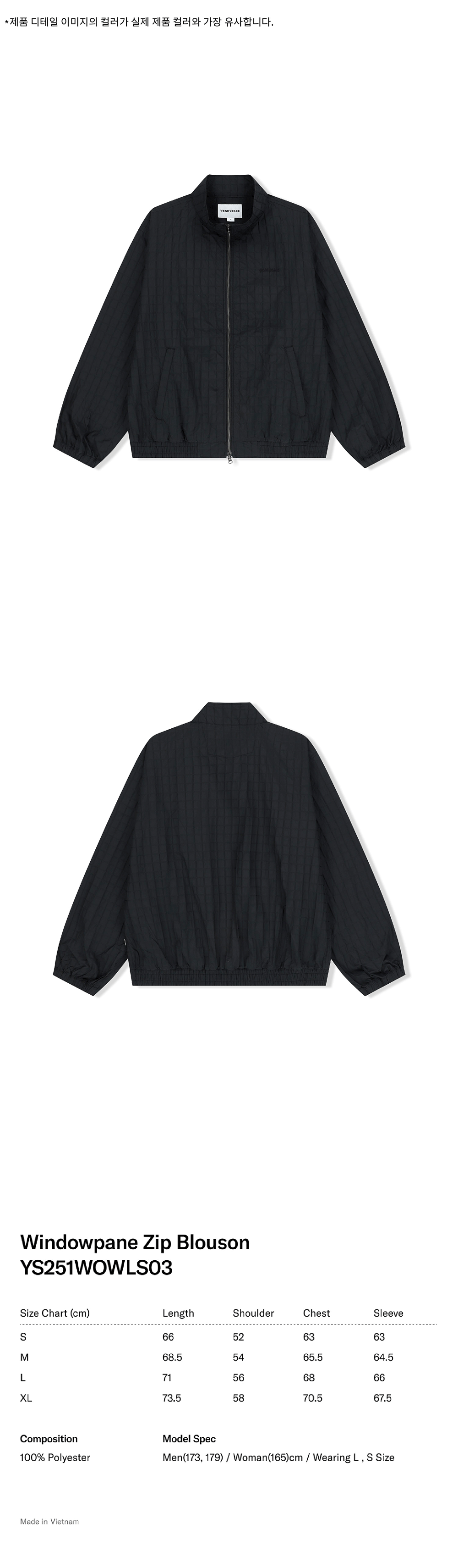 예스아이씨 윈도우페인 집업 블루종 블랙