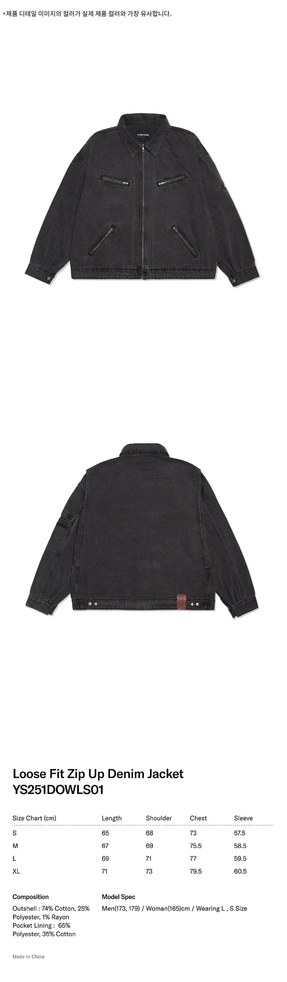 예스아이씨 루즈 핏 집업 데님 재킷 블랙