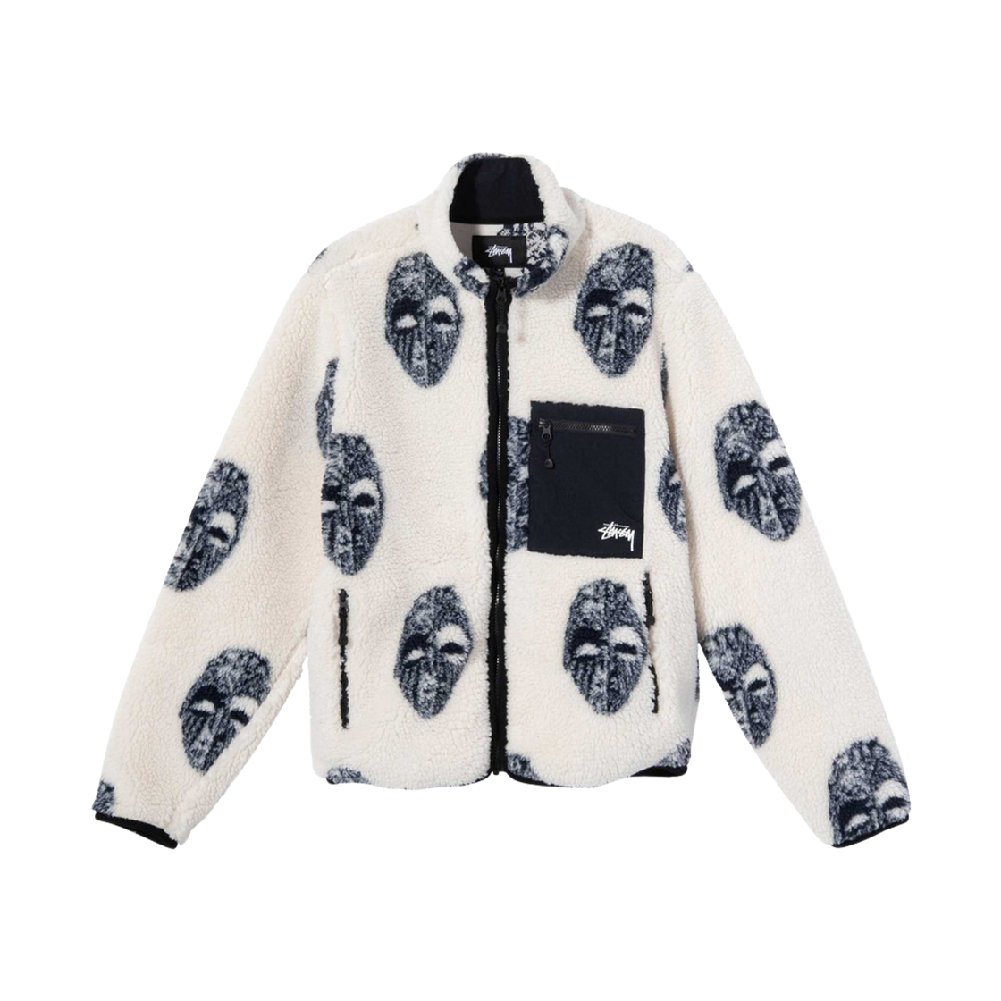 스투시 마스크 자카드 쉐르파 플리스 자켓 내츄럴