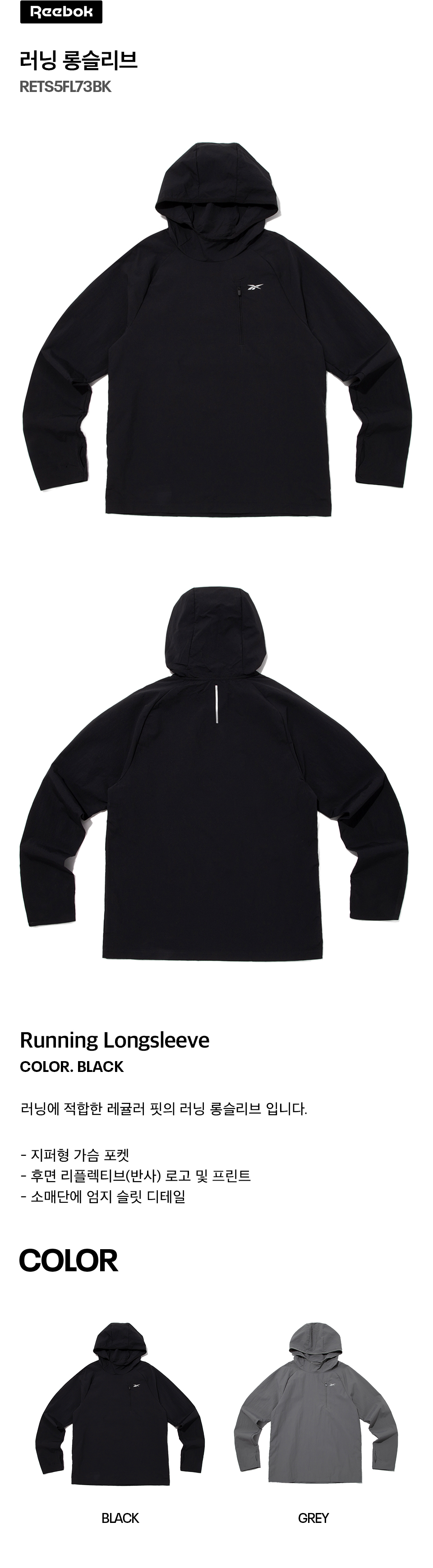 리복 러닝 롱슬리브 블랙