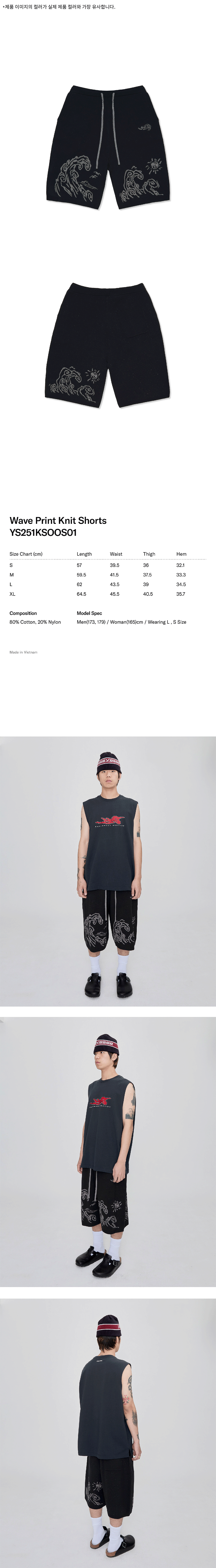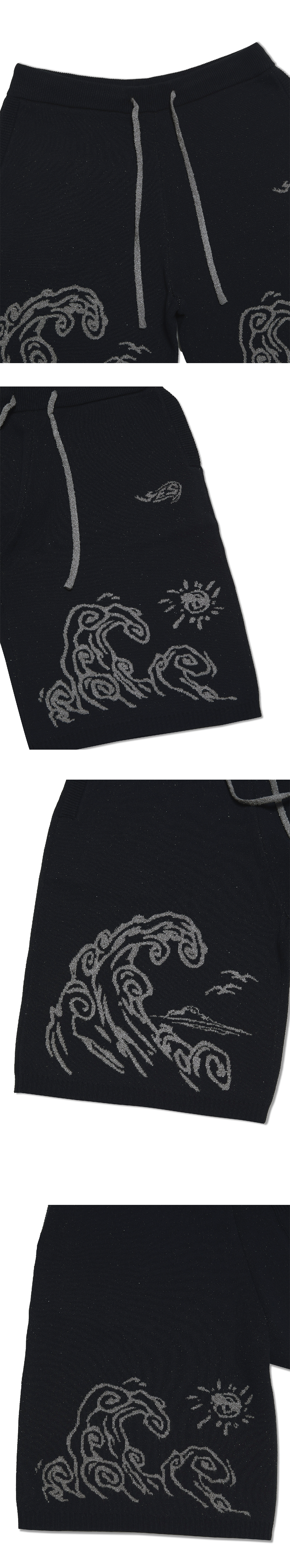 예스아이씨 웨이브 프린트 니트 쇼츠 블랙