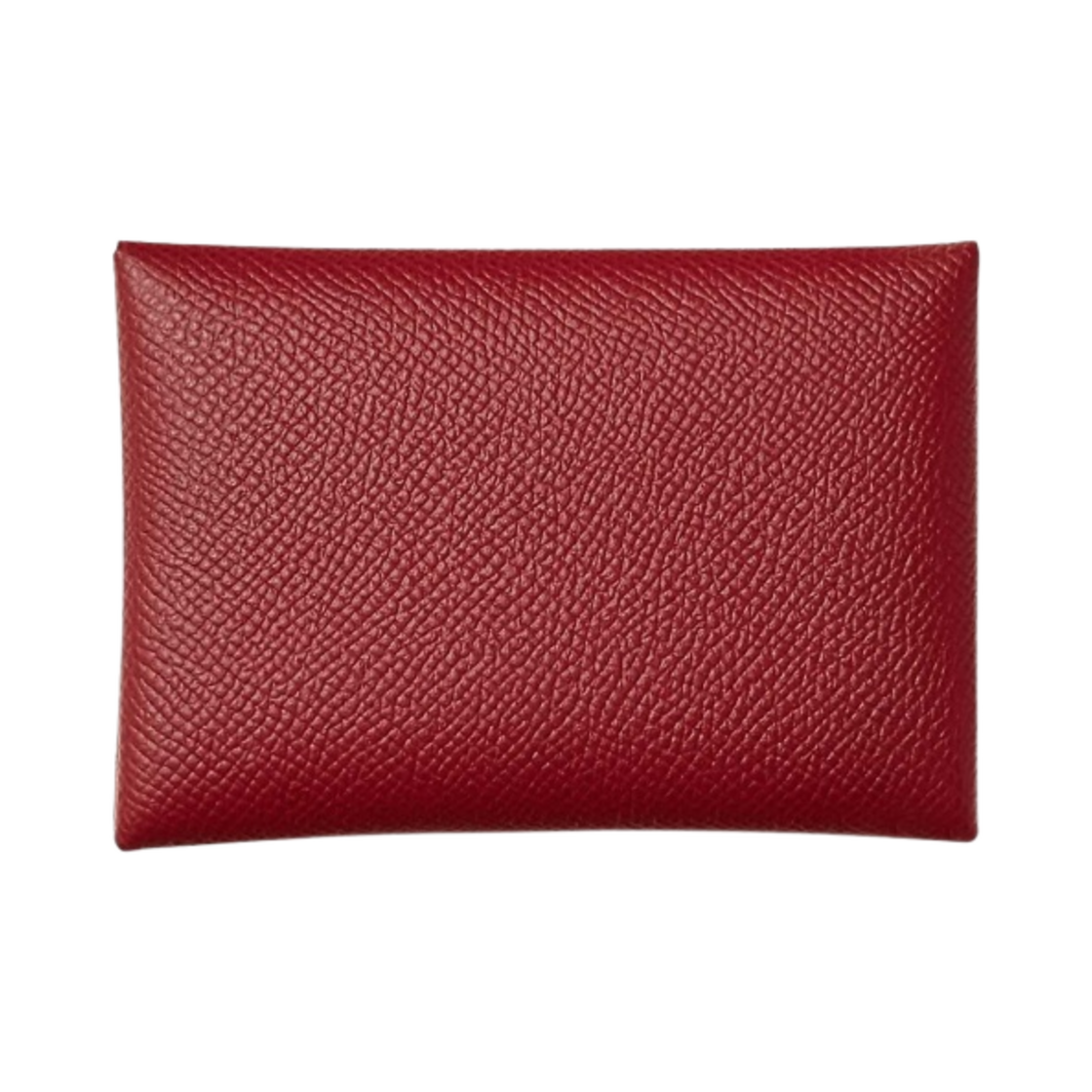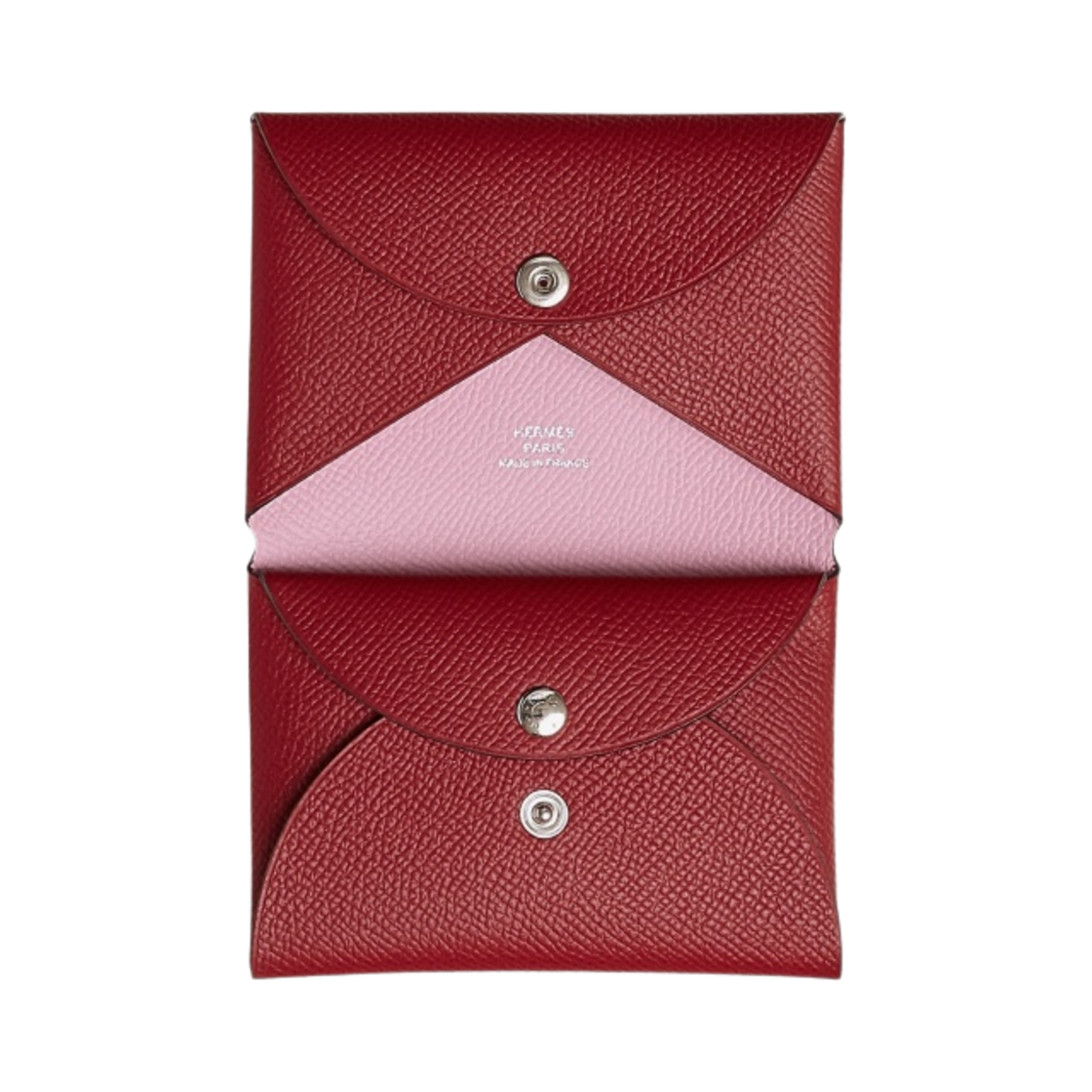 Hermes Calvi Duo Compact Verso Card Holder Epsom & Palladium Rouge Grenat Mauve Sylvestre