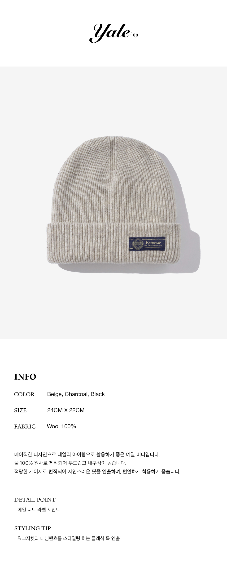 예일 울 니트 비니_베이지