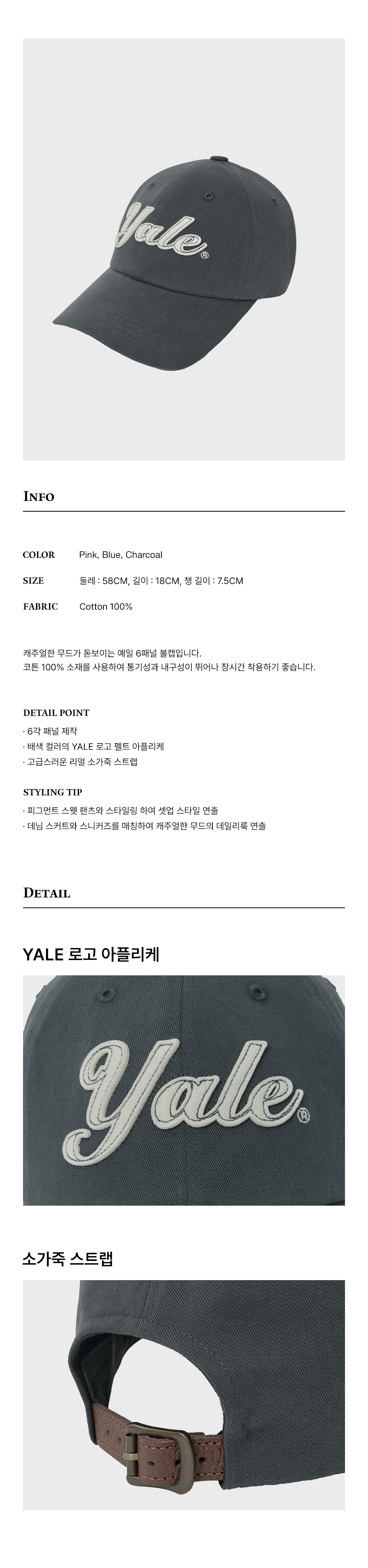 예일 펠트 아플리케 볼캡_차콜