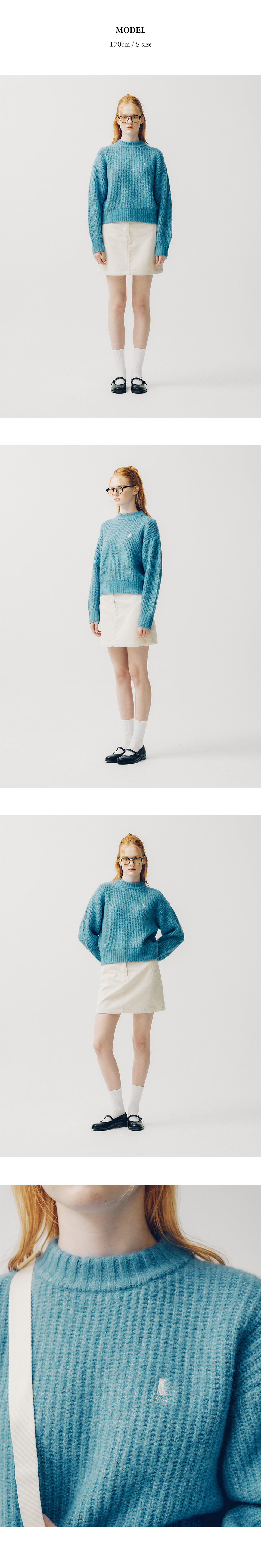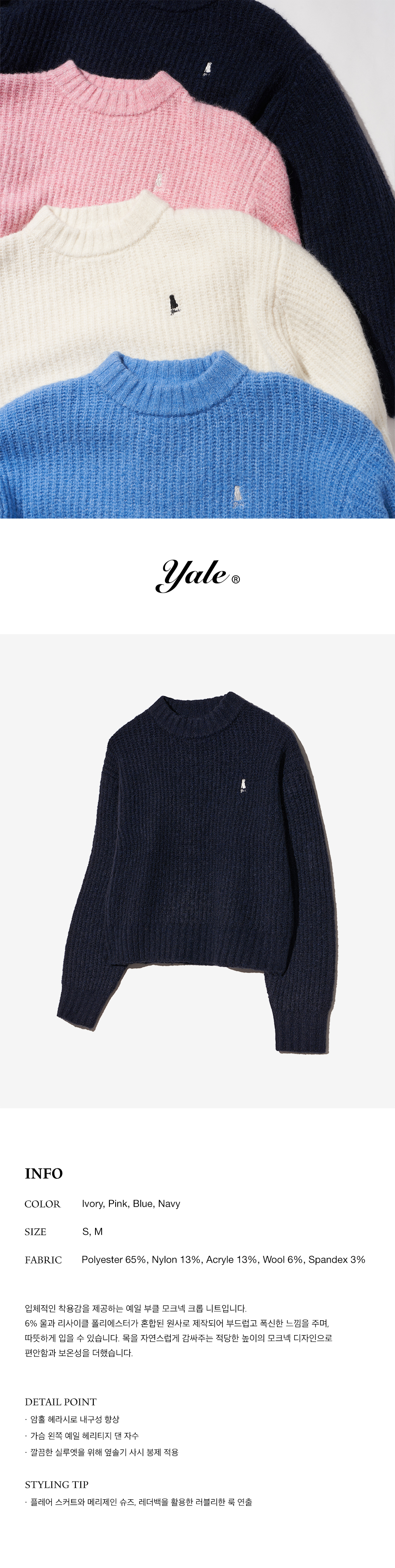 예일 우먼즈 부클레 모크넥 크롭 니트_네이비