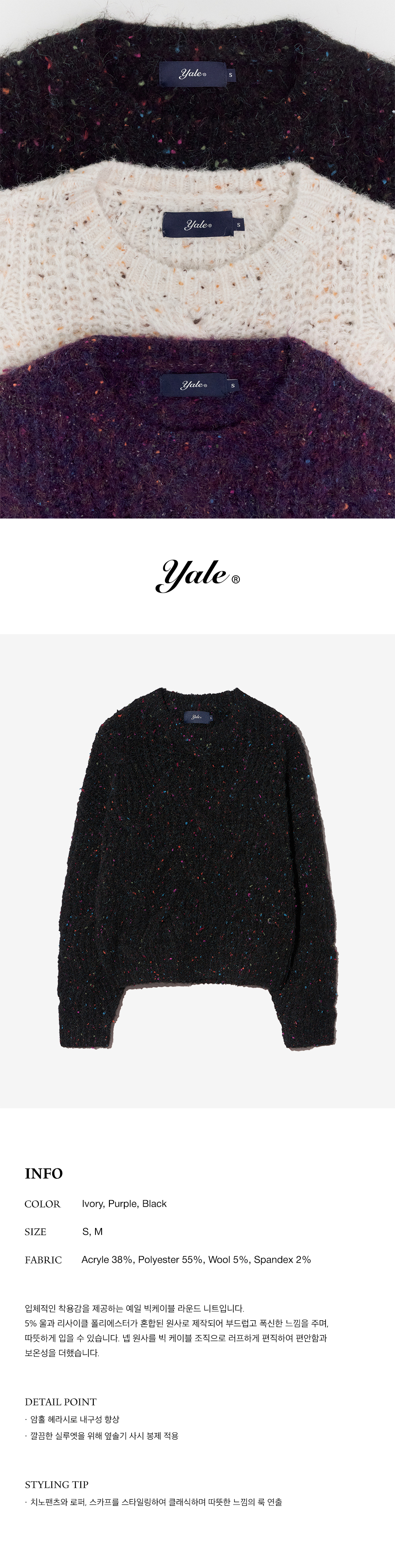 예일 우먼즈 넵 얀 빅 케이블 라운드 니트_블랙