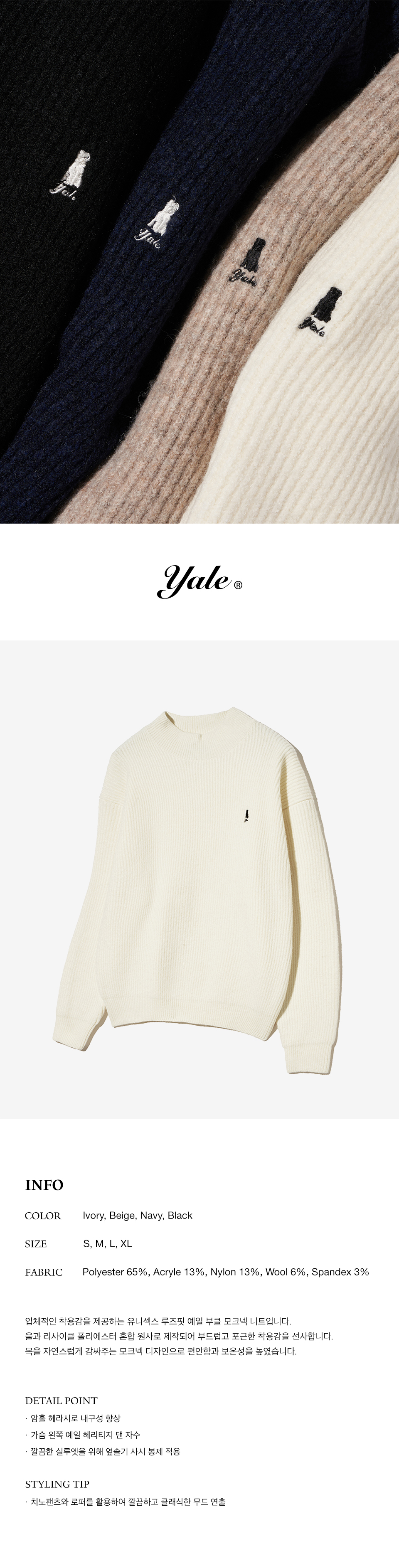 예일 부클레 모크넥 니트_아이보리