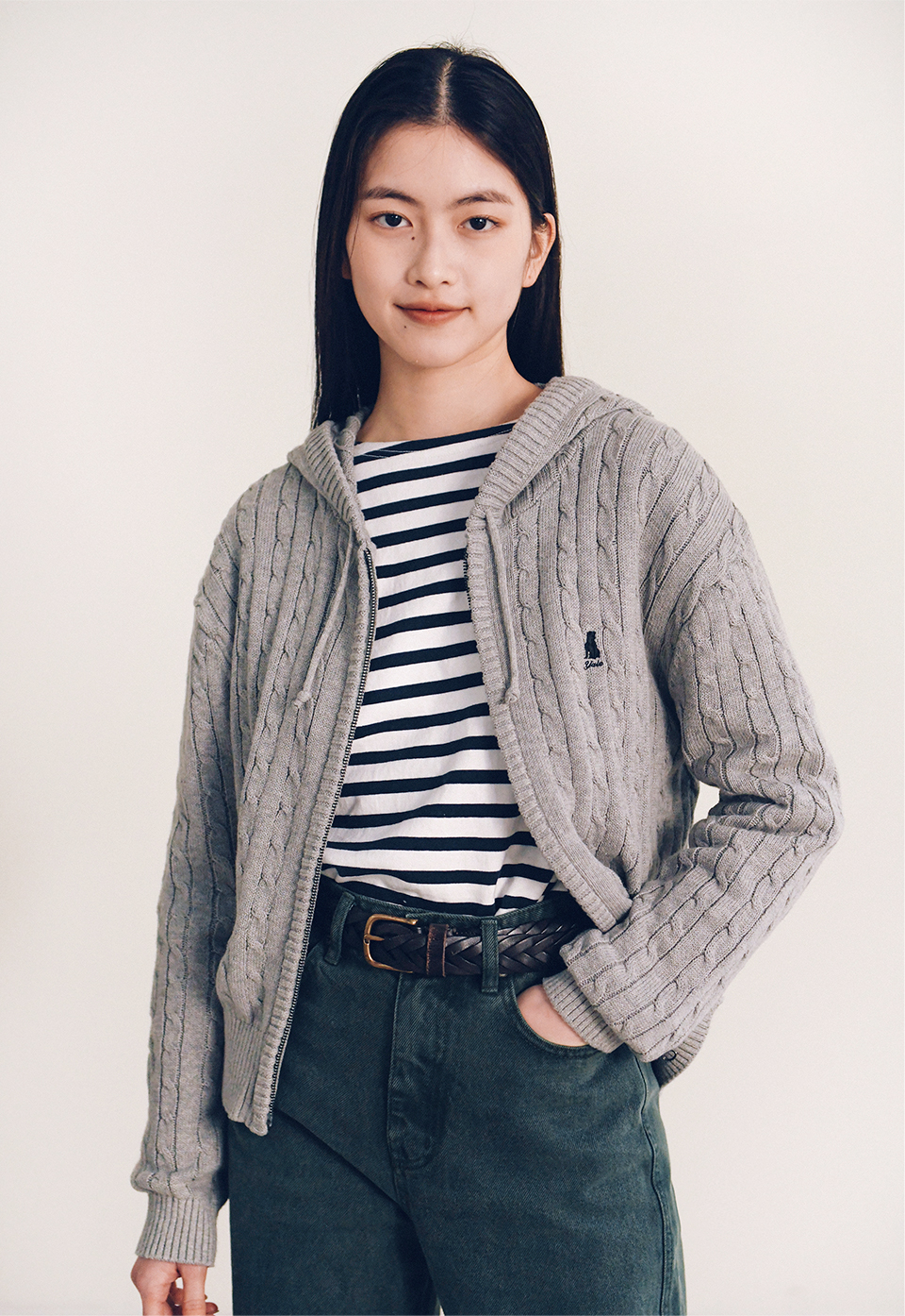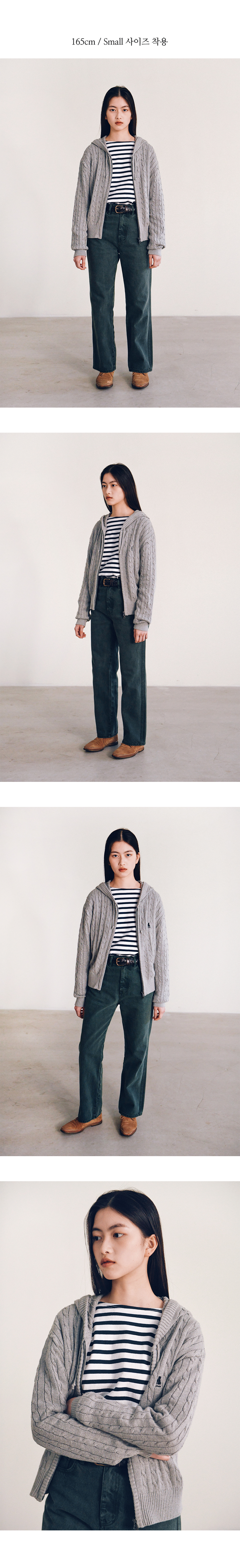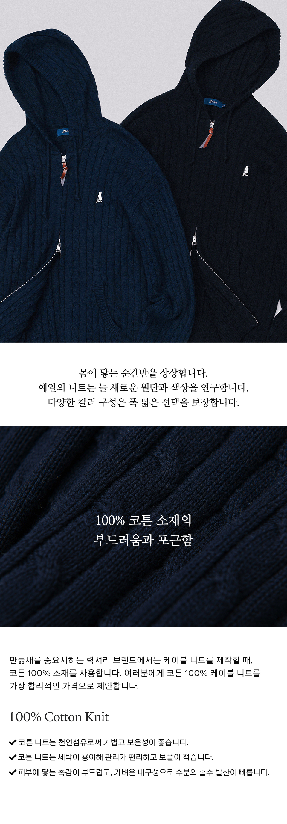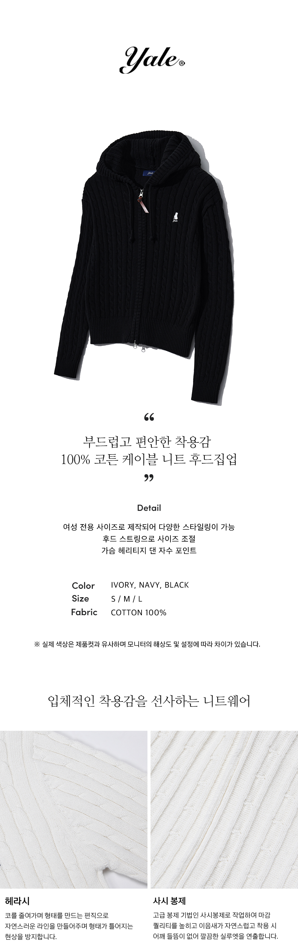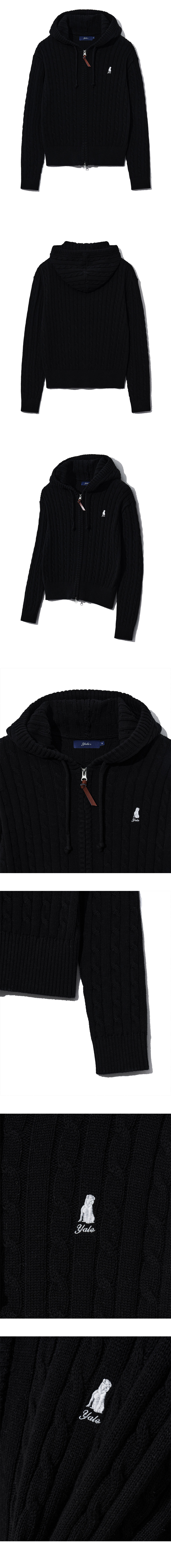 예일 우먼즈 케이블 니트 후드 집업_블랙