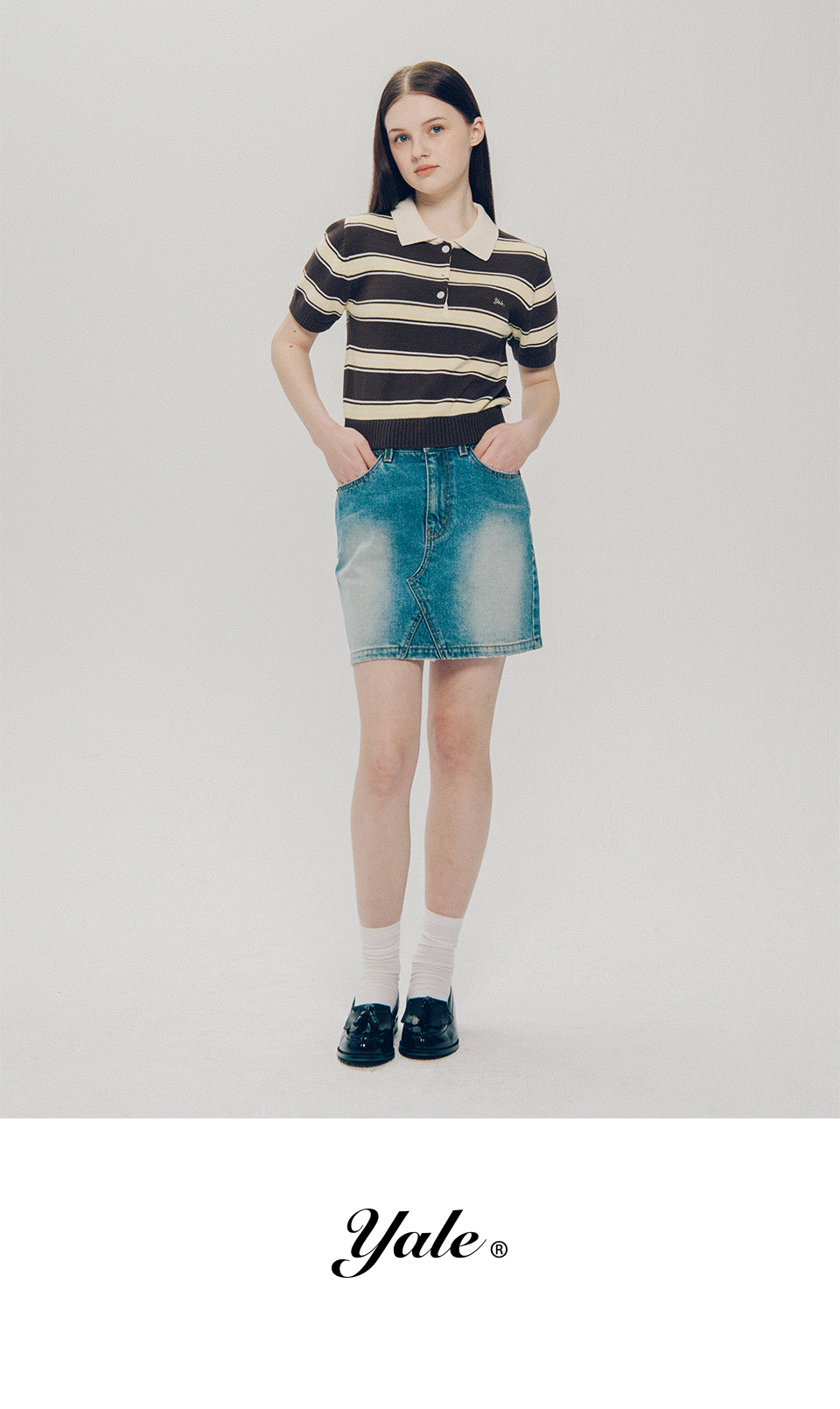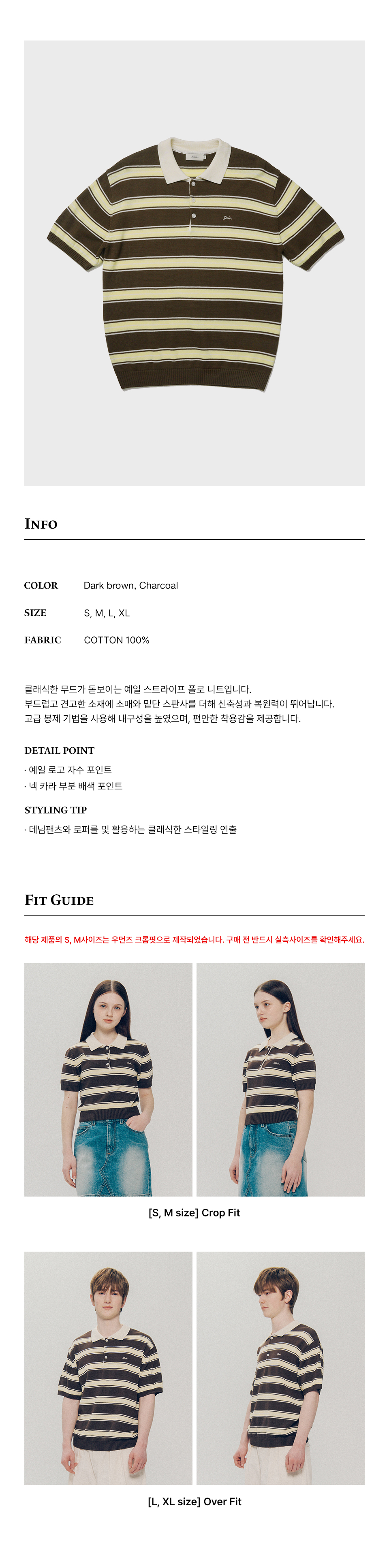 예일 멀티 스트라이프 카라 니트 반팔_다크 브라운