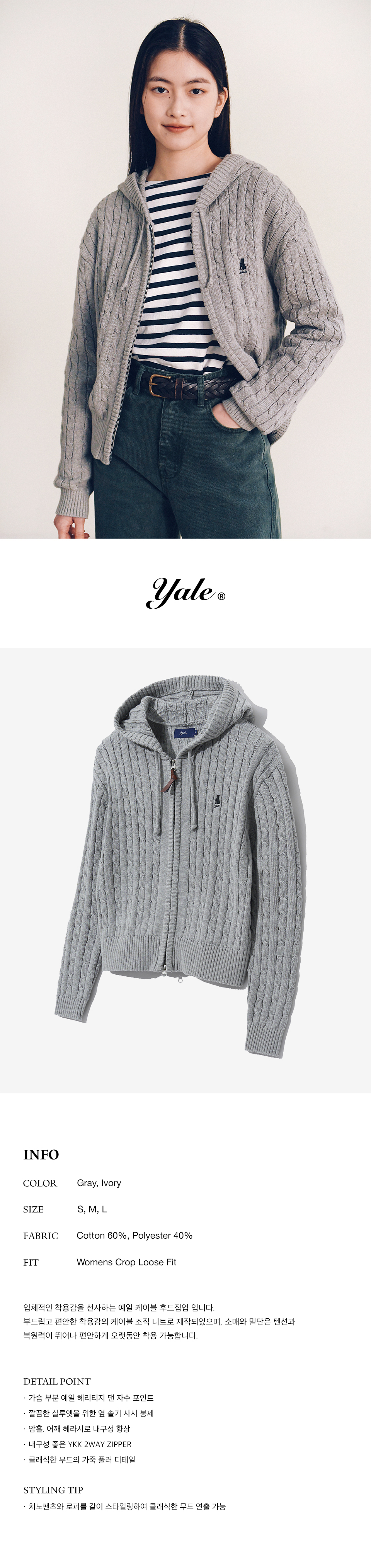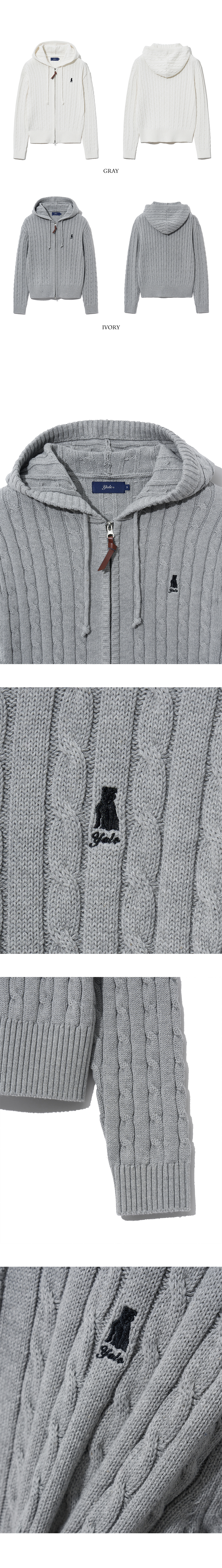 예일 우먼즈 케이블 니트 후드 집업_그레이