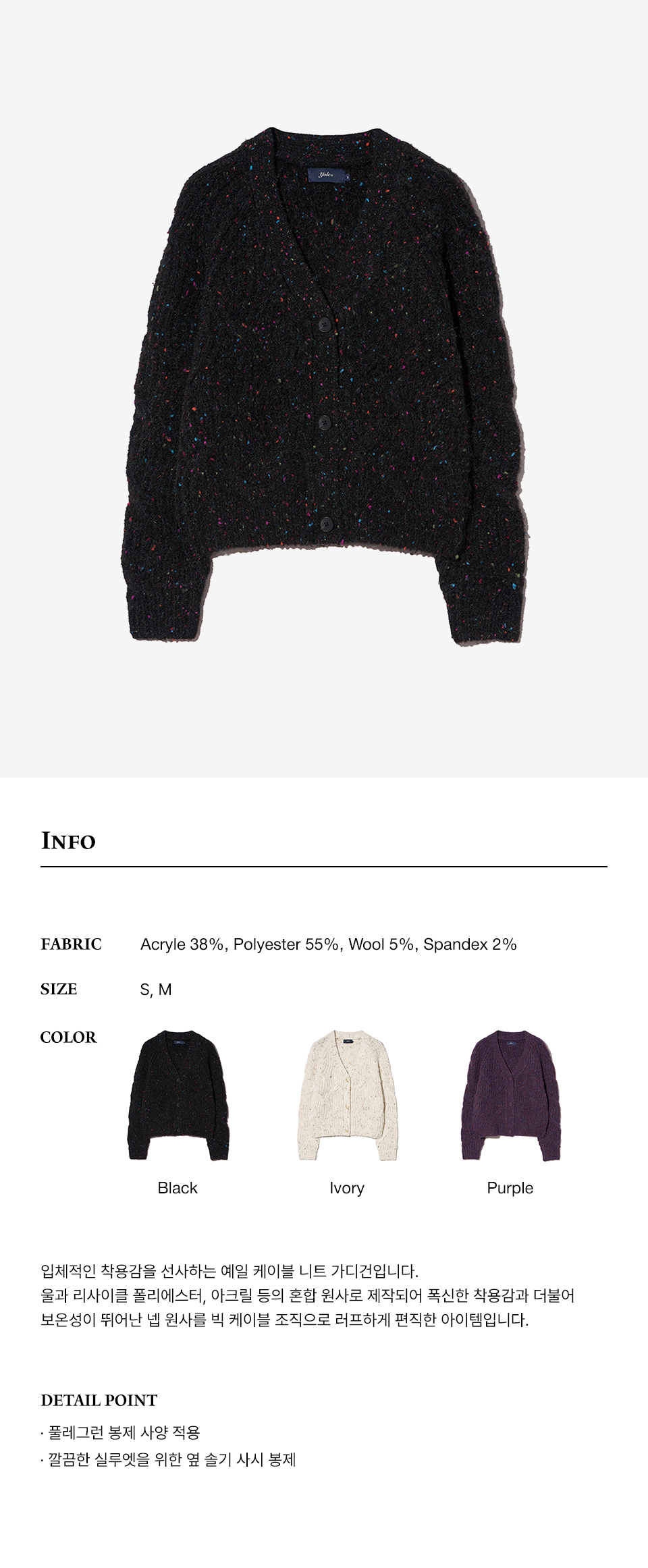 예일 우먼즈 넵 얀 빅 케이블 가디건_블랙