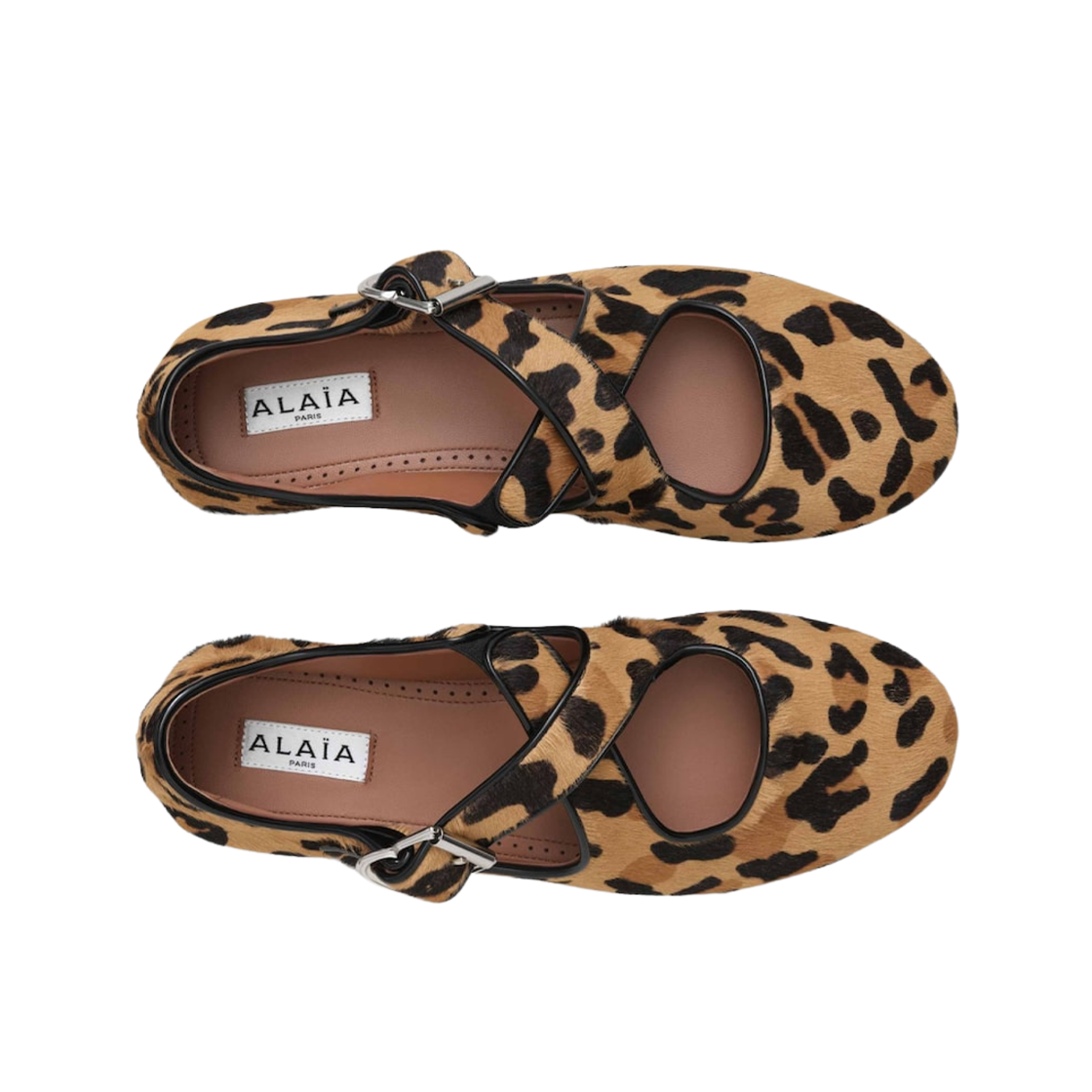 (W) 알라이아 크리스 크로스 레오파드 헤어카프 발레 플랫 세피아