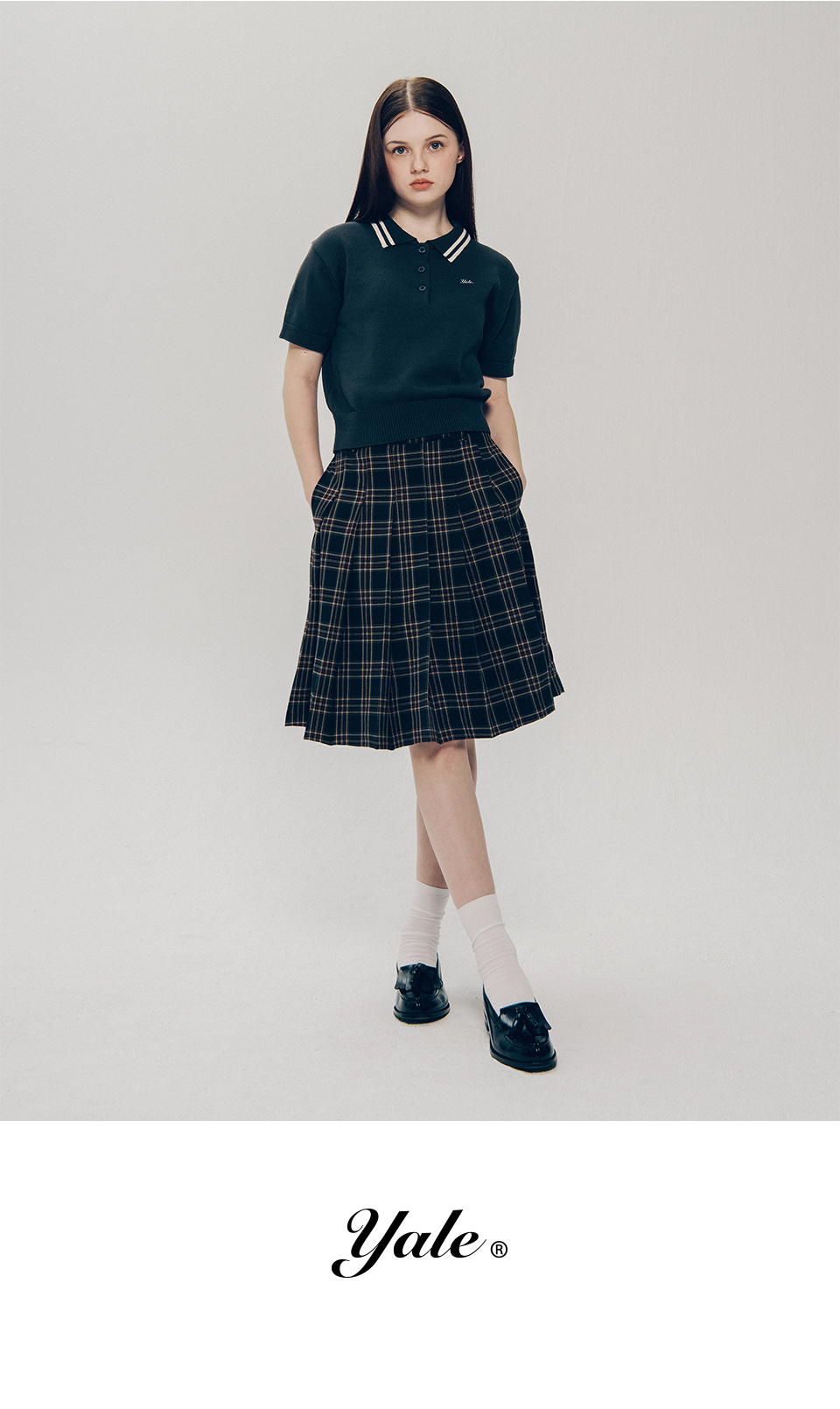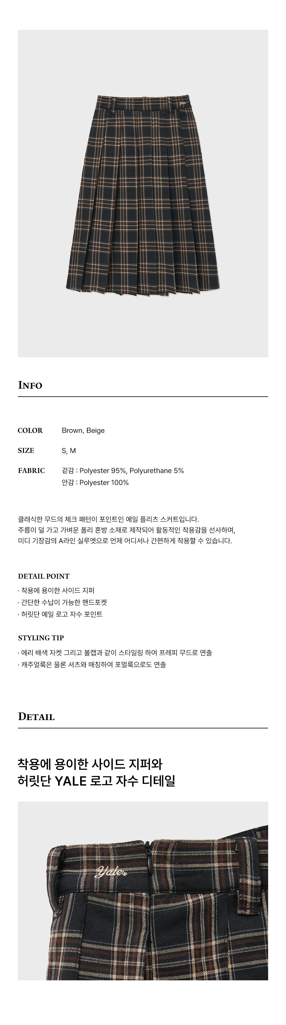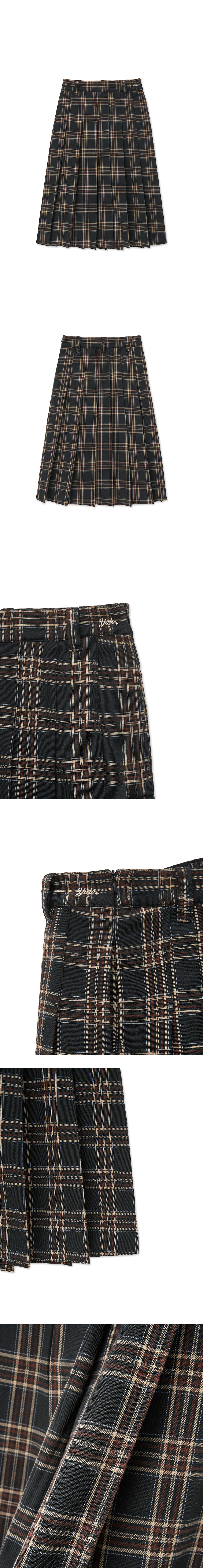 예일 체크 플리츠 스커트_브라운