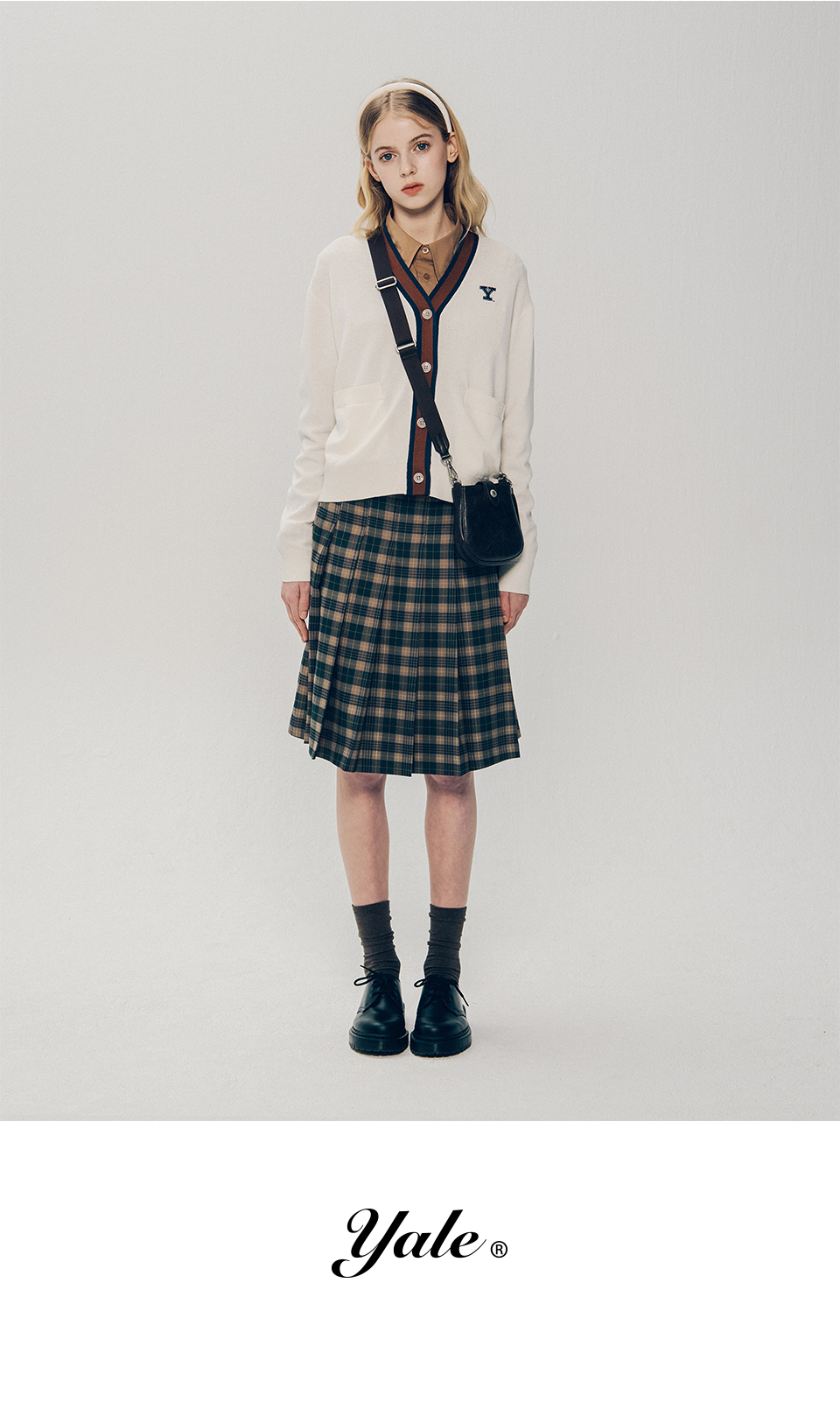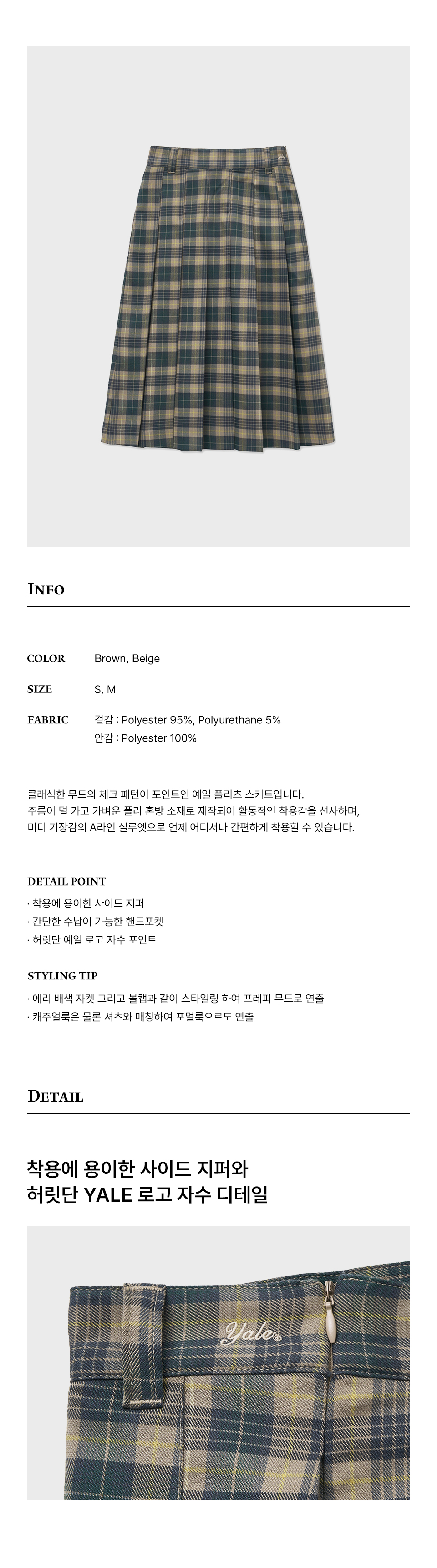 예일 체크 플리츠 스커트_베이지
