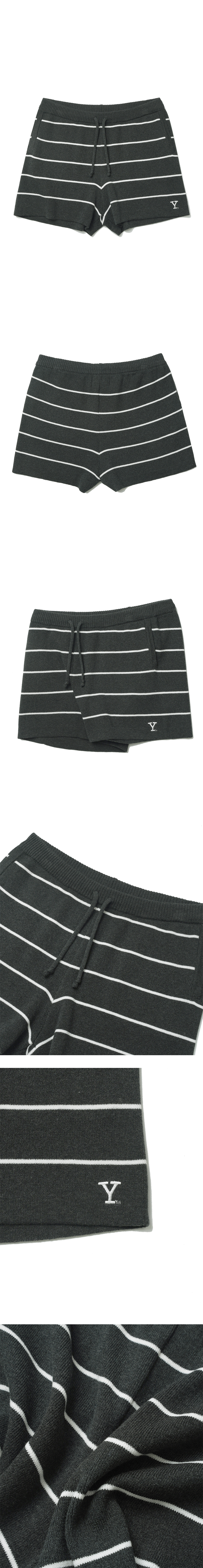 예일 스트라이프 니트 숏팬츠_차콜