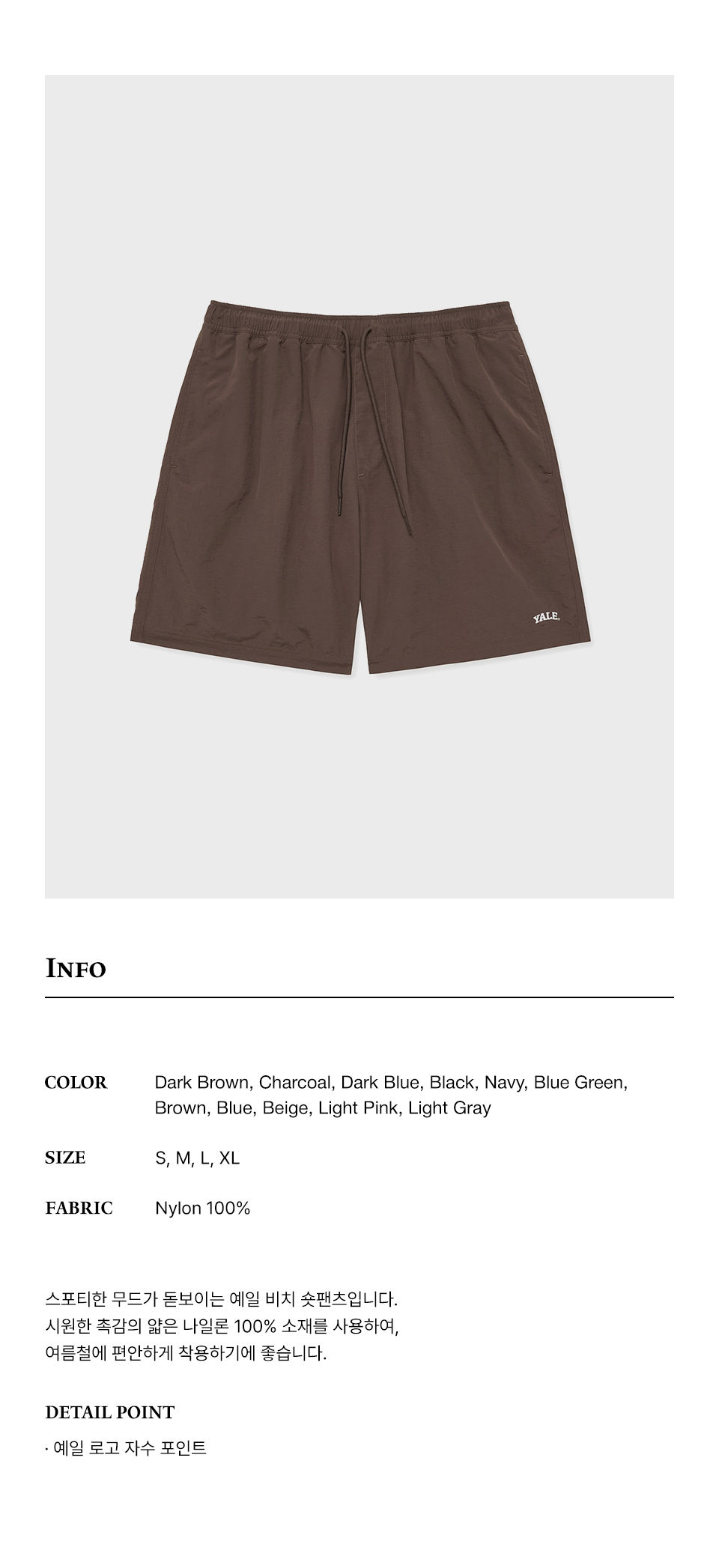 예일 나일론 하프 비치 쇼츠 다크_브라운