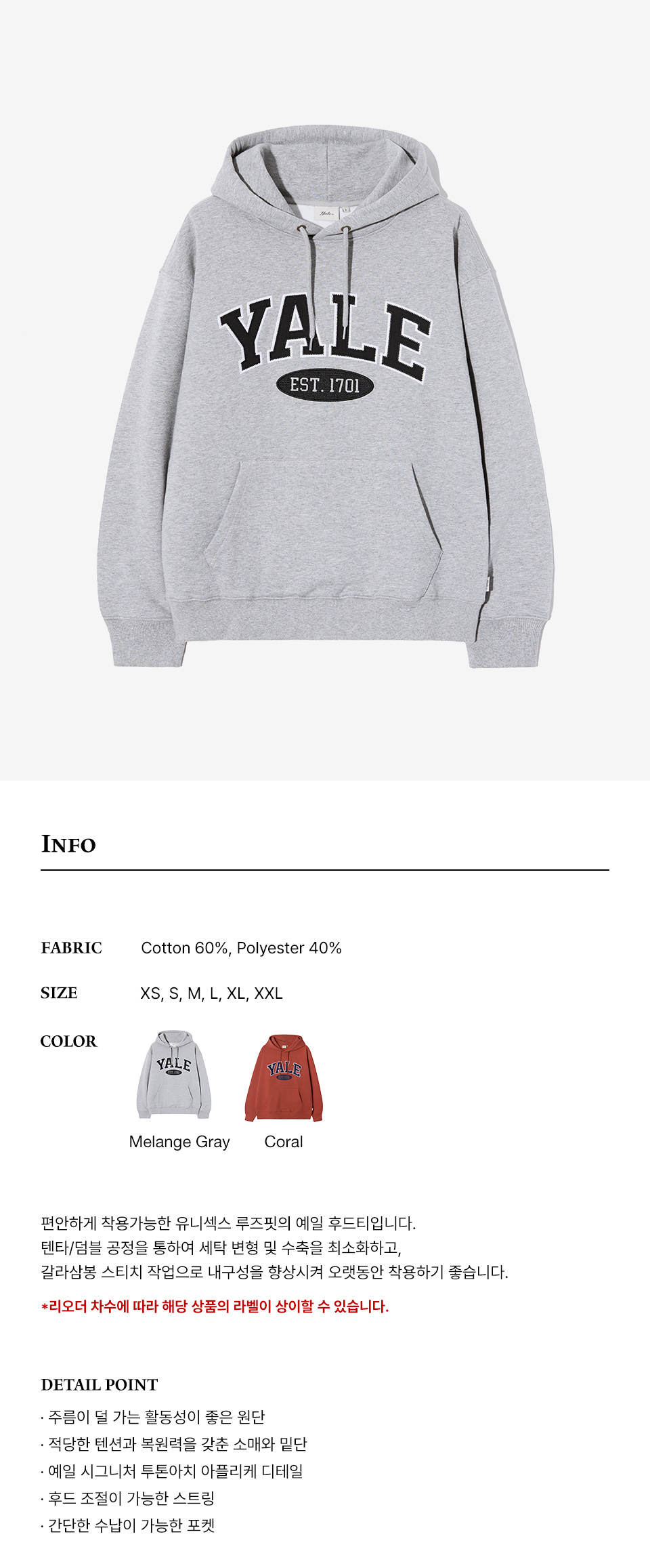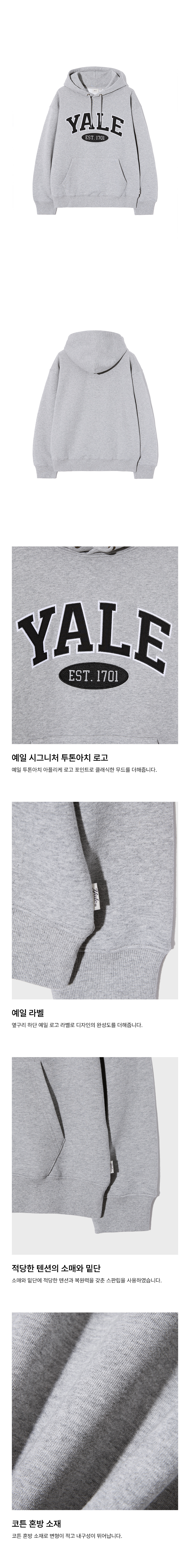 예일 투톤아치 후드_그레이