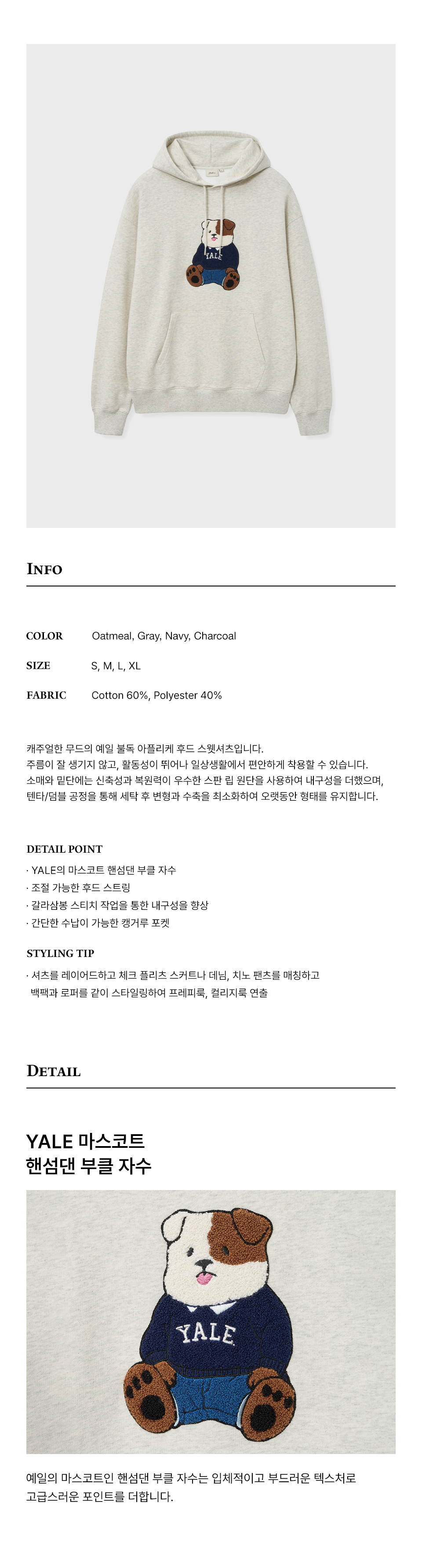 예일 소프트 불독 아플리케 후드_오트밀