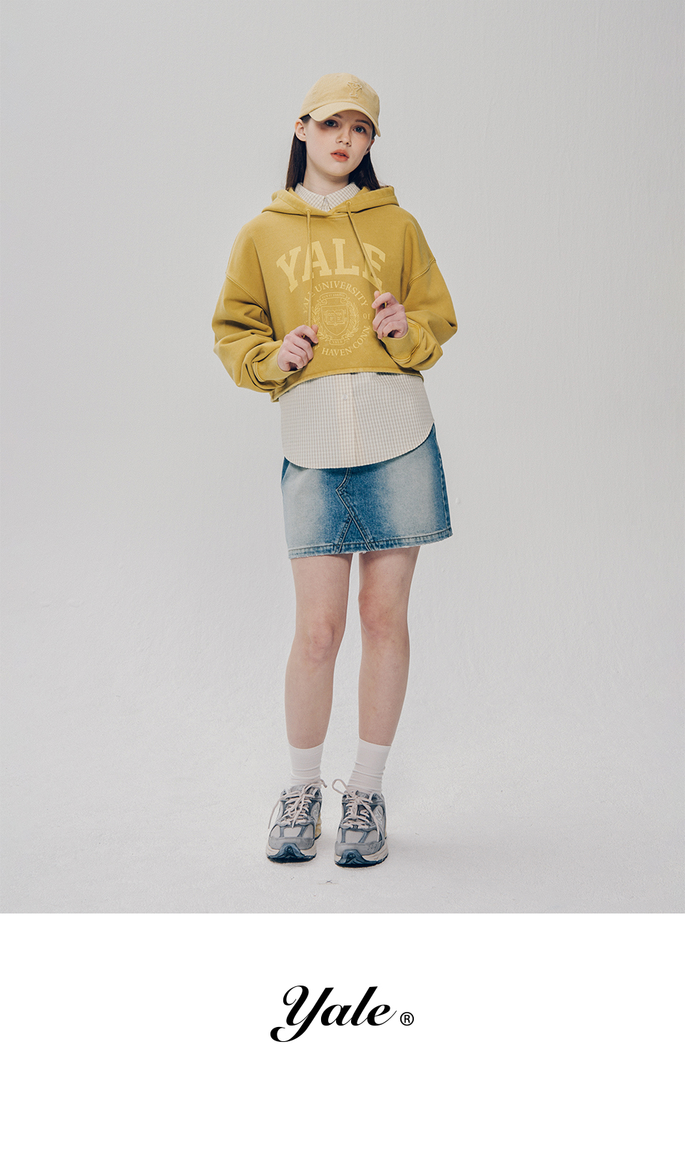 예일 우먼즈 아치로고 피그먼트 크롭 후드_옐로우