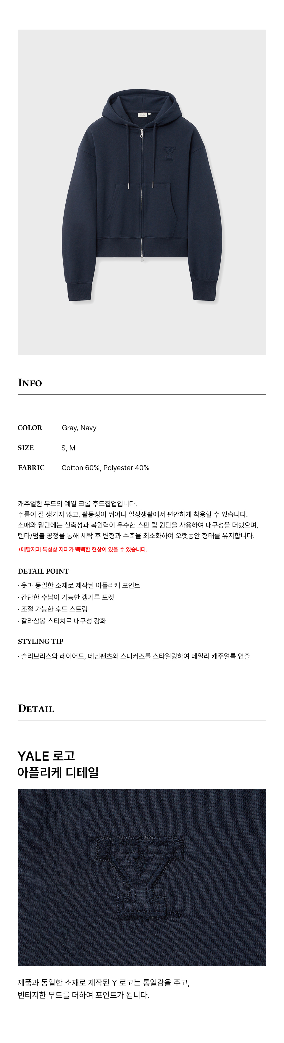 예일 우먼즈 Y로고 크롭 후드집업_네이비