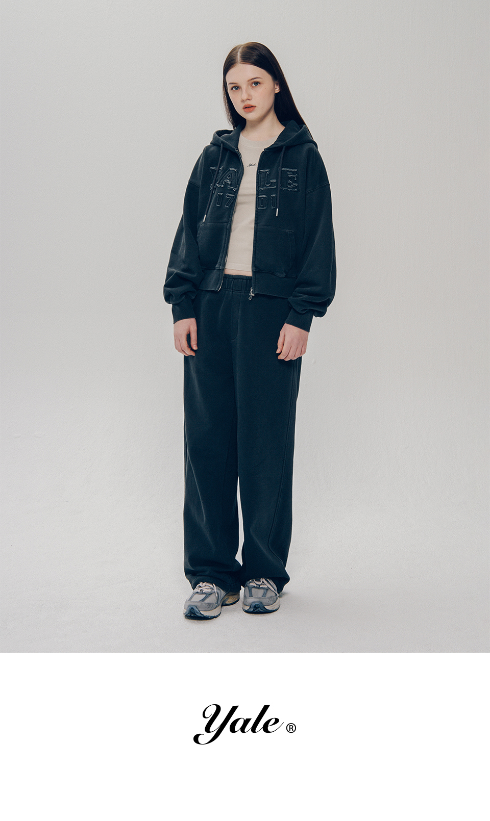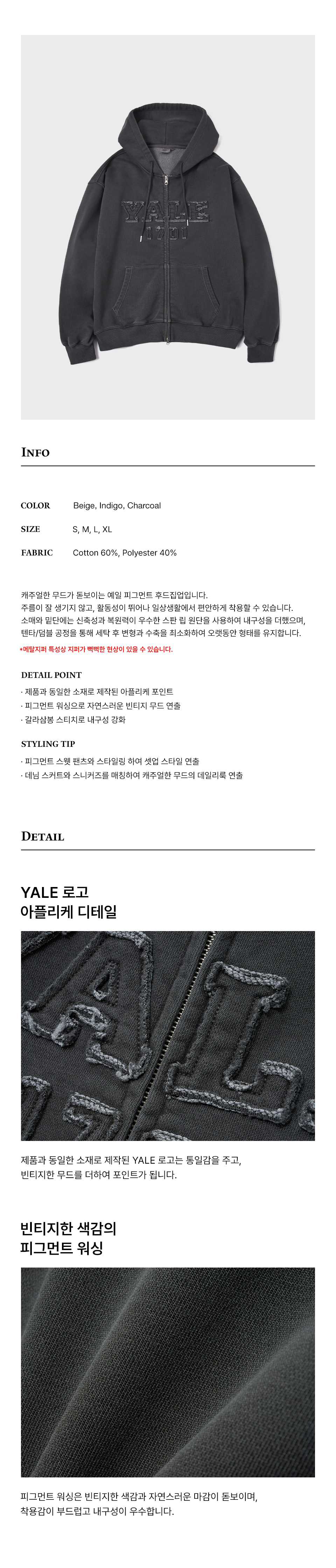 예일 피그먼트 아플리케 후드집업_차콜