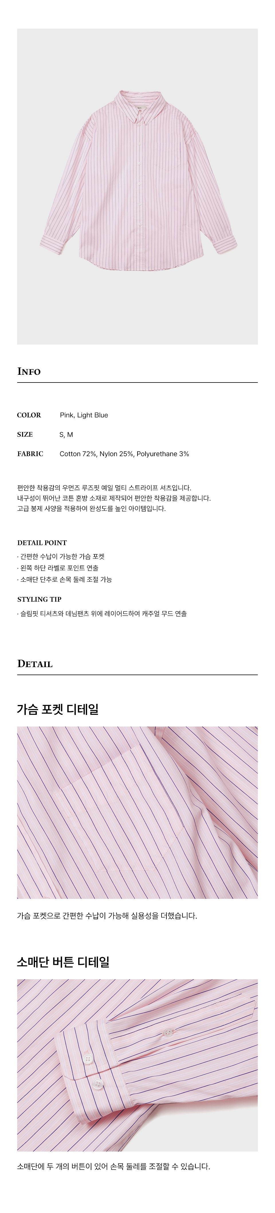 예일 우먼즈 루즈핏 멀티스트라이프 셔츠_핑크