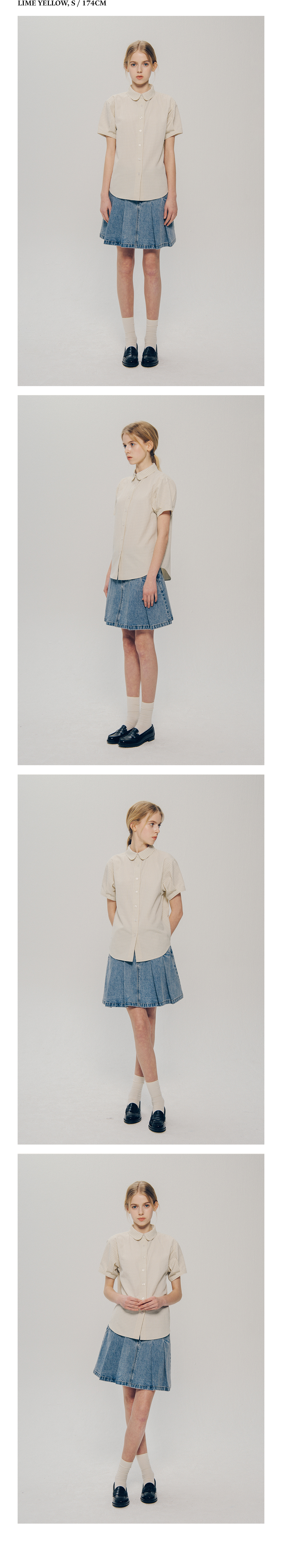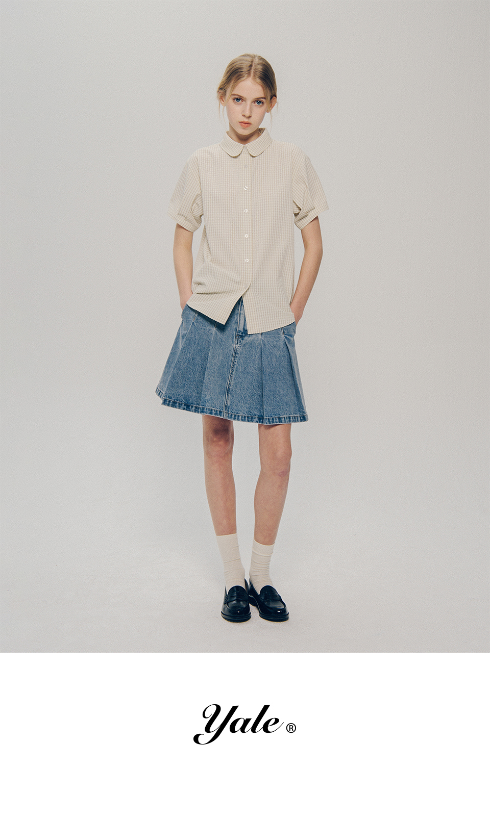 예일 체크 라운드카라 하프슬리브 셔츠_네이비