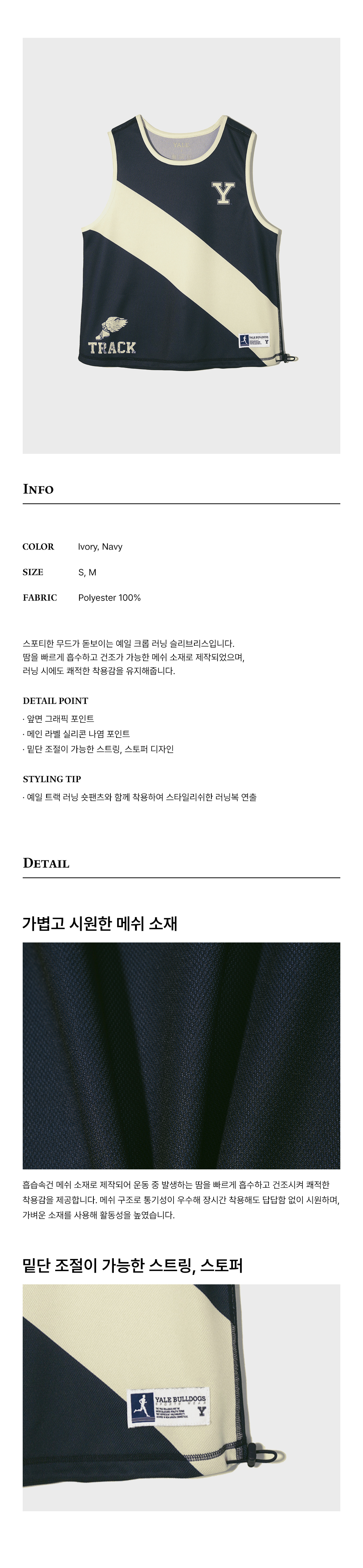 예일 우먼즈 메쉬 러닝 크롭 슬리브리스_네이비