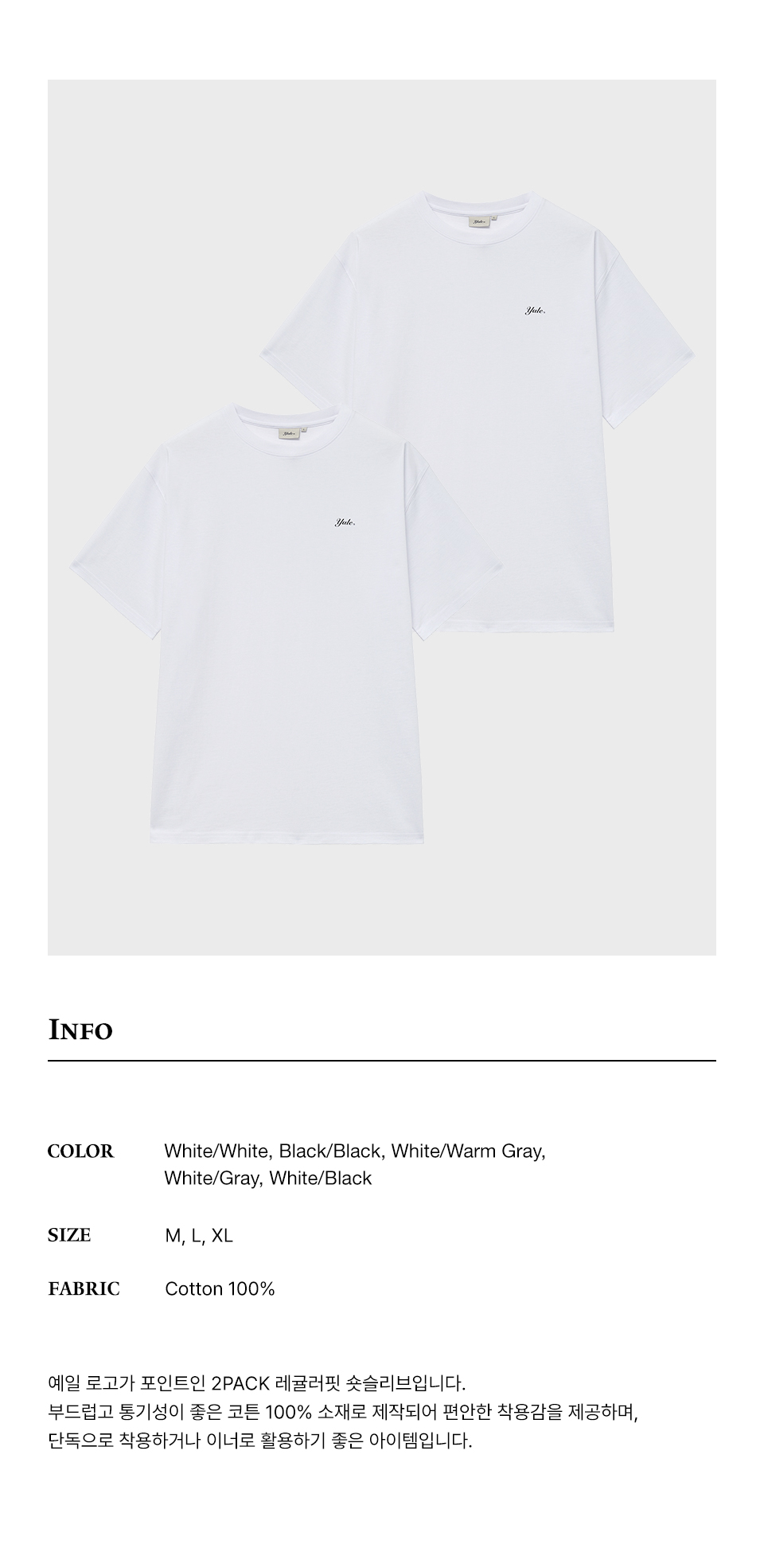 예일 [2PACK] 레귤러 핏 스넬로고 반팔티셔츠_화이트/화이트