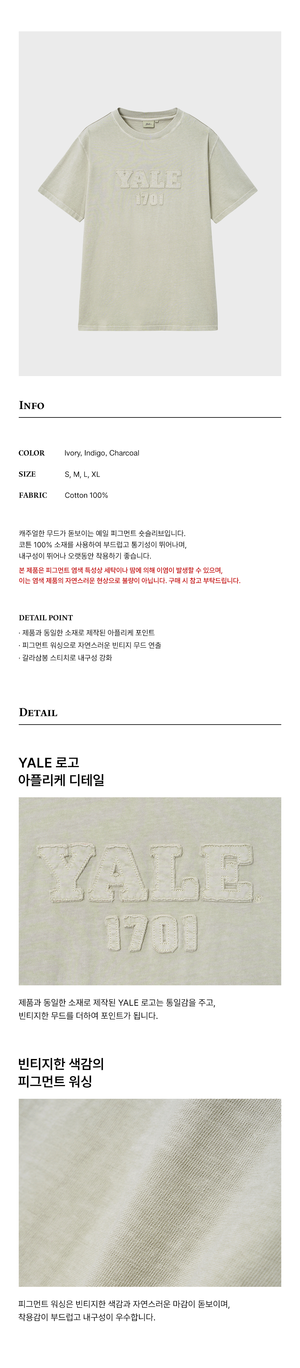 예일 피그먼트 아플리케 티셔츠_아이보리