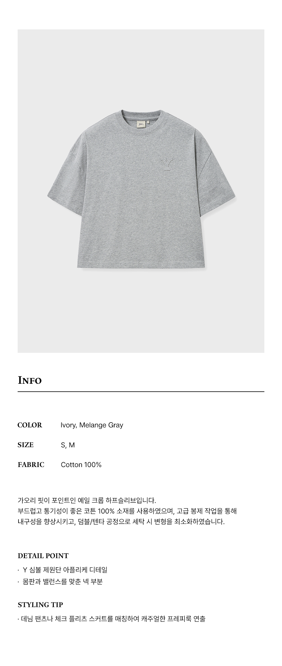 예일 우먼즈 크롭 아플리케 반팔티셔츠_그레이