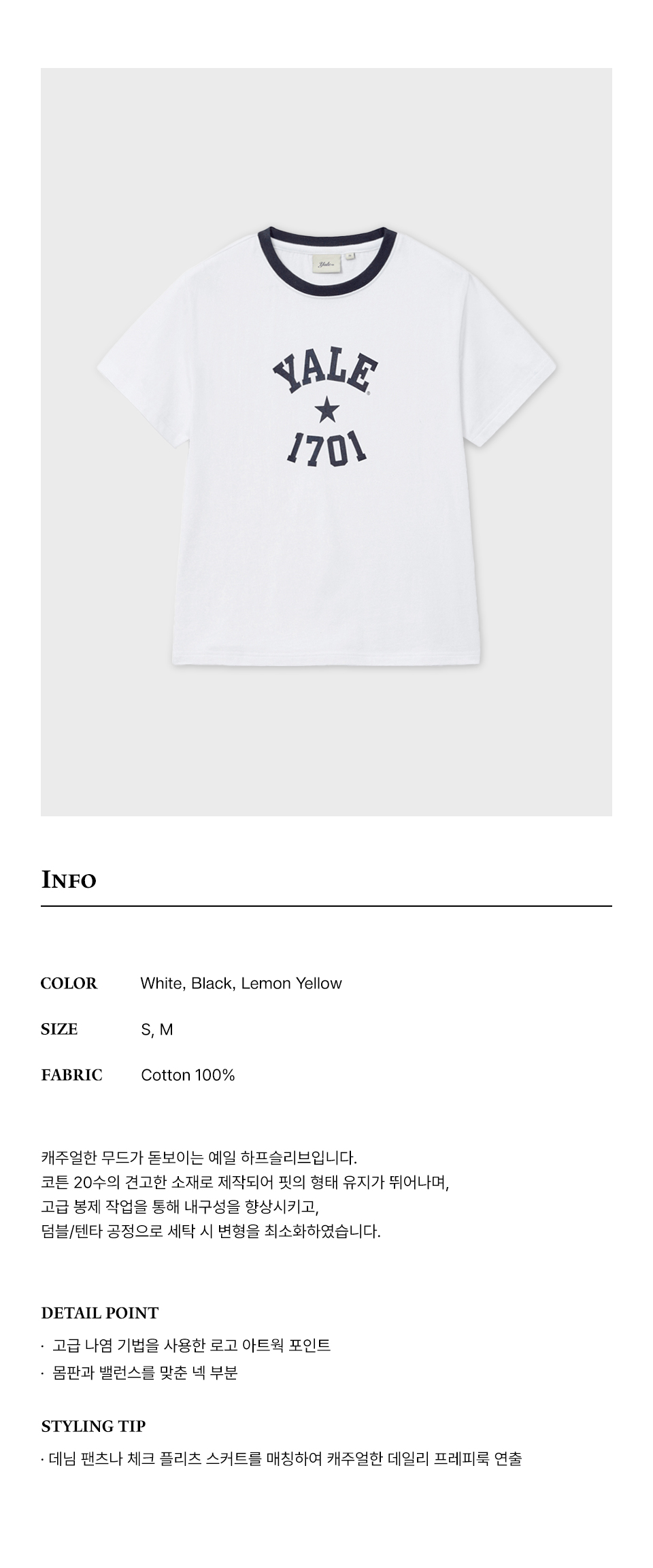예일 우먼즈 1701 로고 티셔츠_화이트