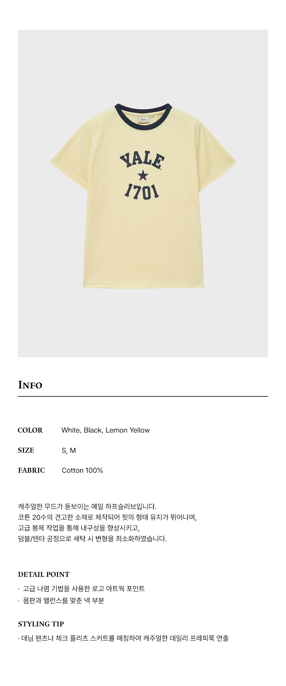 예일 우먼즈 1701 로고 티셔츠_옐로우