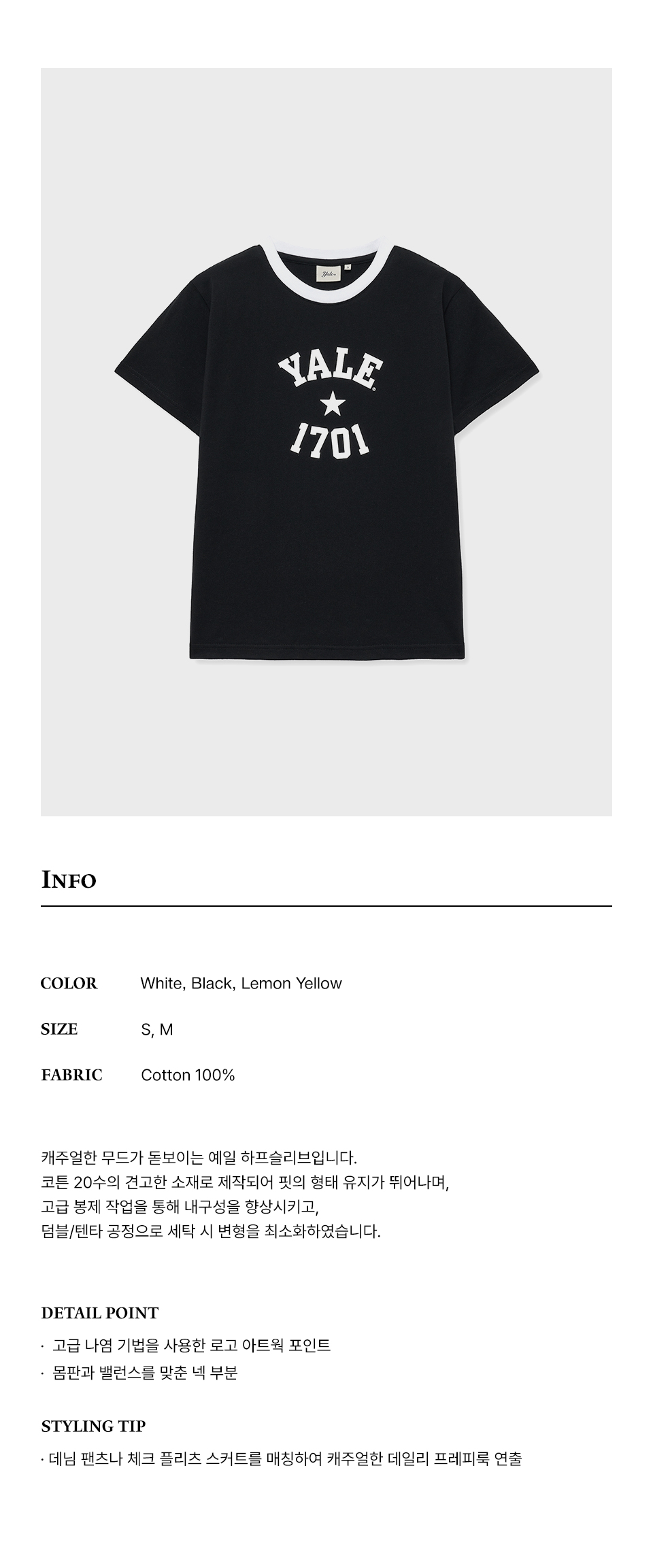 예일 우먼즈 1701 로고 티셔츠_블랙