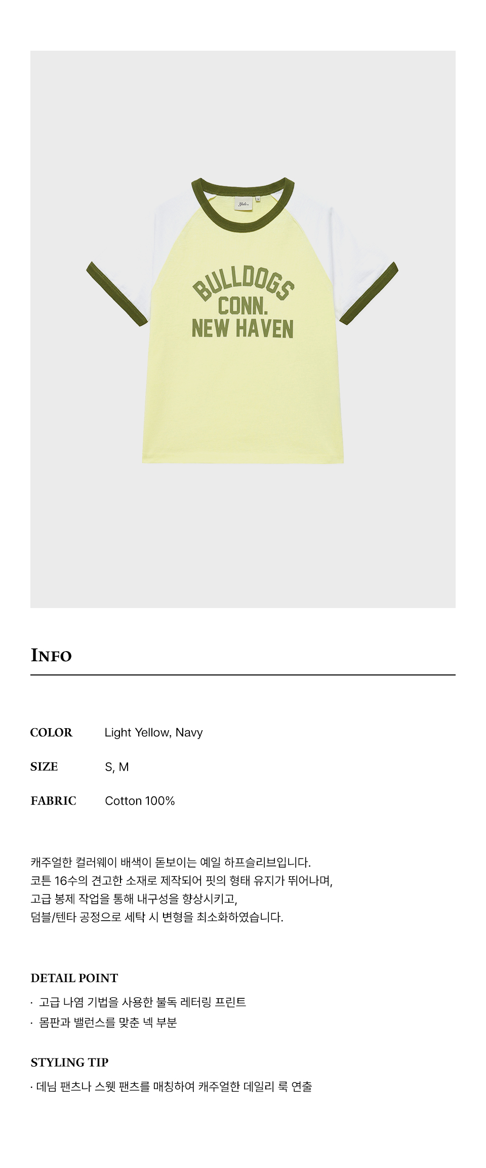 예일 우먼즈 불독스 래글런 링거 티셔츠_라이트옐로우