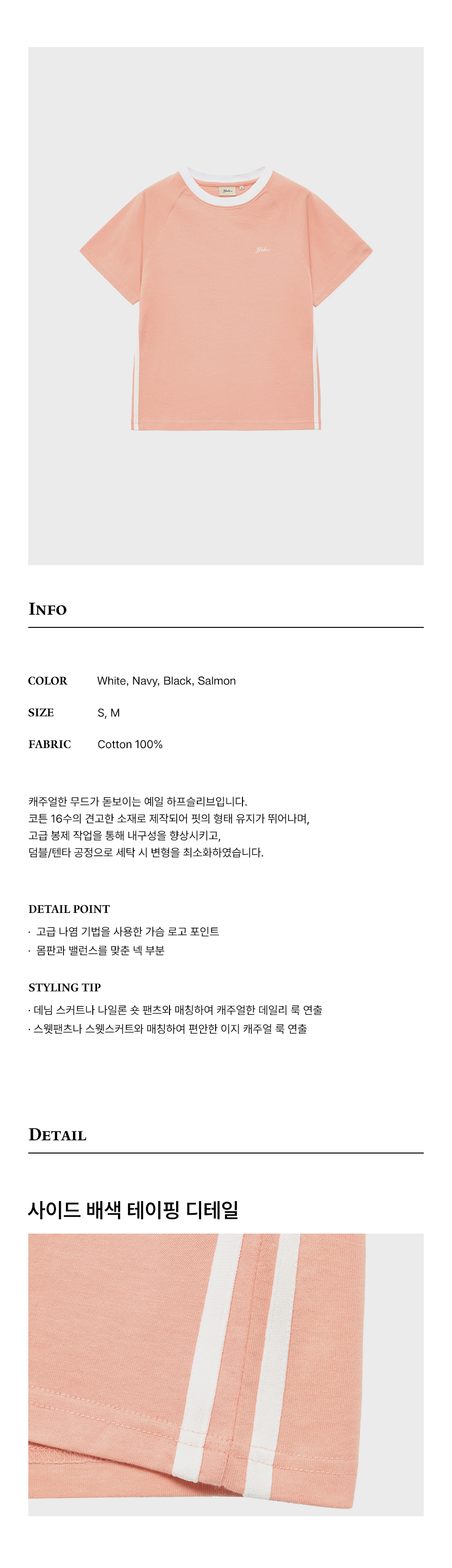 예일 스넬로고 테이핑 티셔츠_살몬
