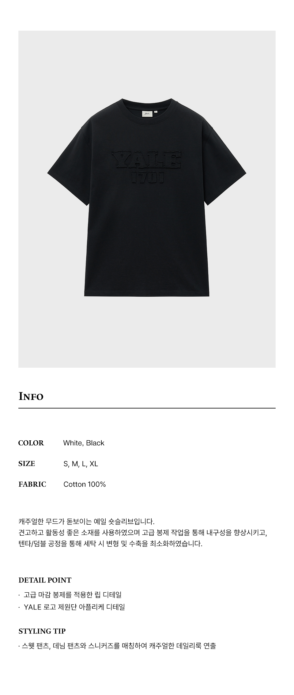 예일 1701 로고 아플리케 반팔_블랙