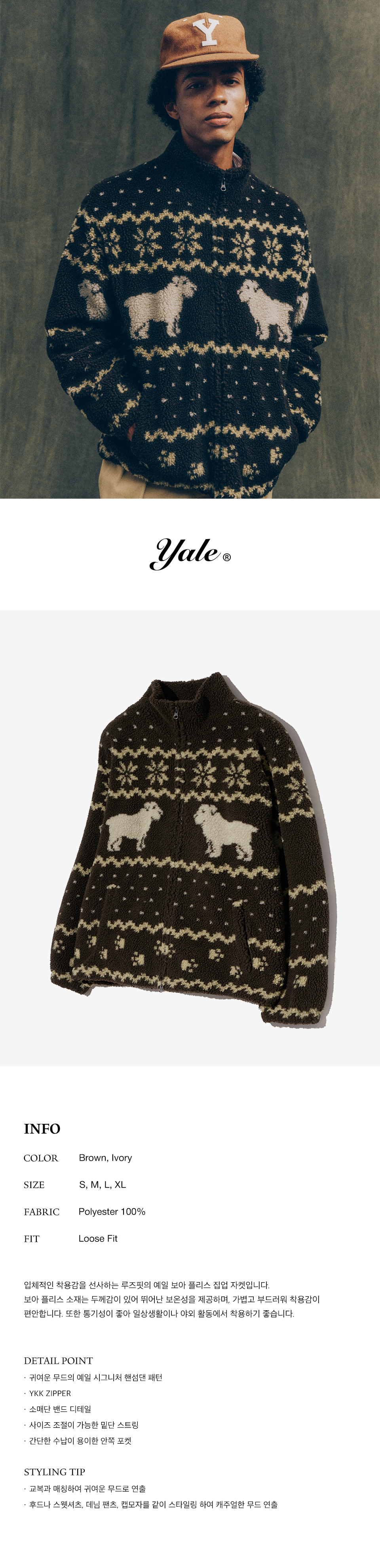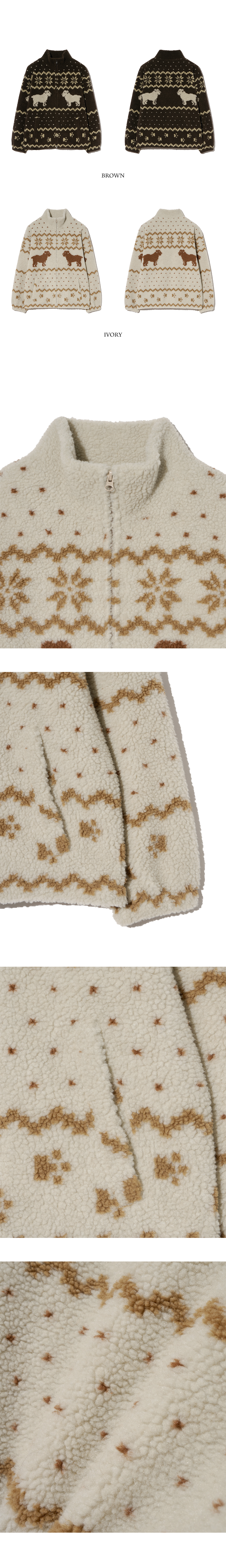 예일 자카드 보아 플리스 자켓_브라운