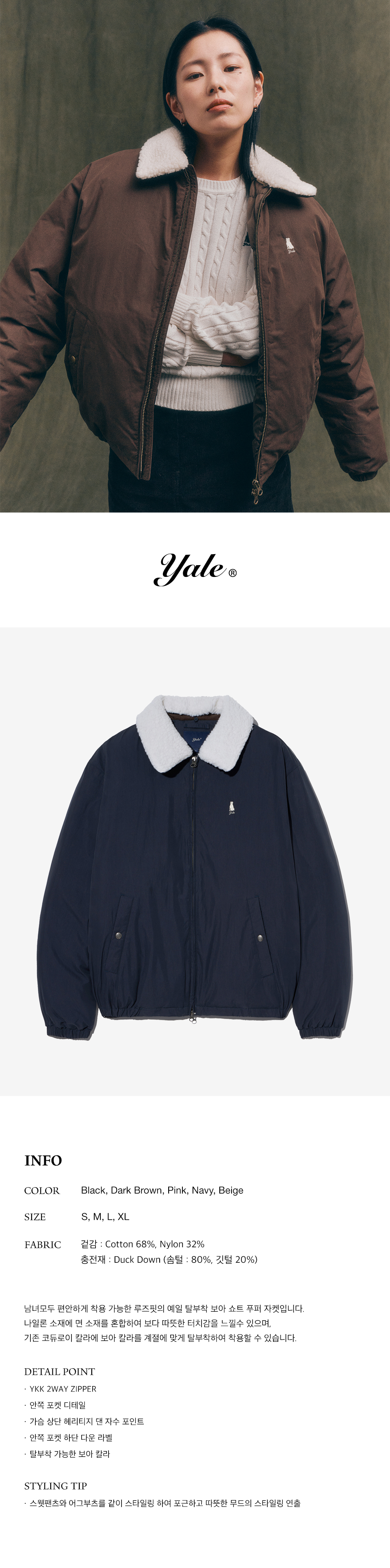예일 탈부착 보아 쇼트 푸퍼 자켓_네이비