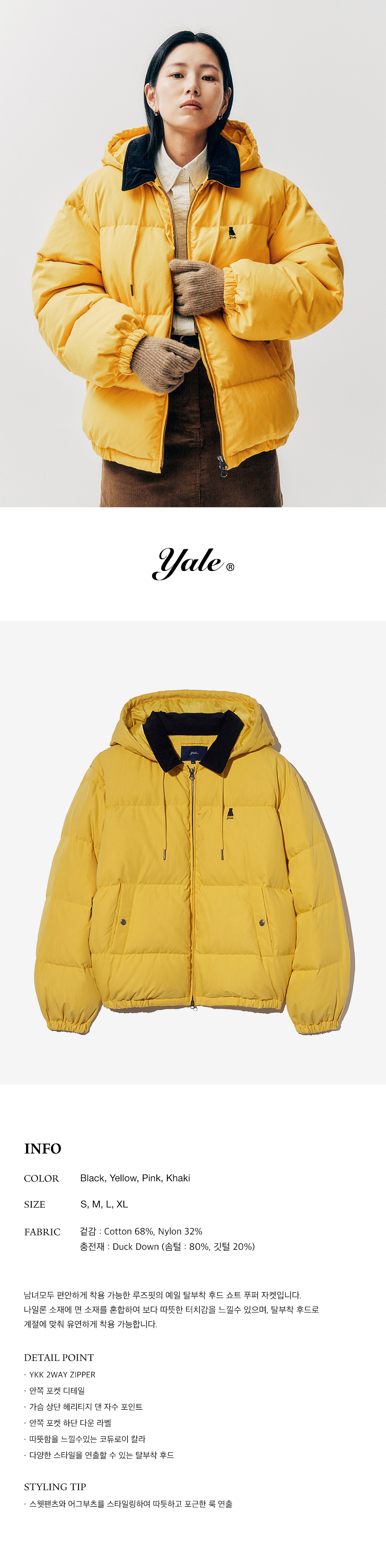 예일 탈부착 후드 쇼트 푸퍼 자켓_옐로우