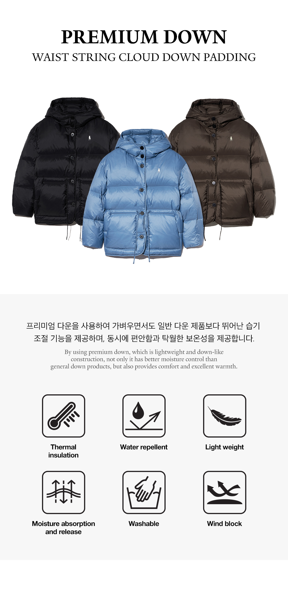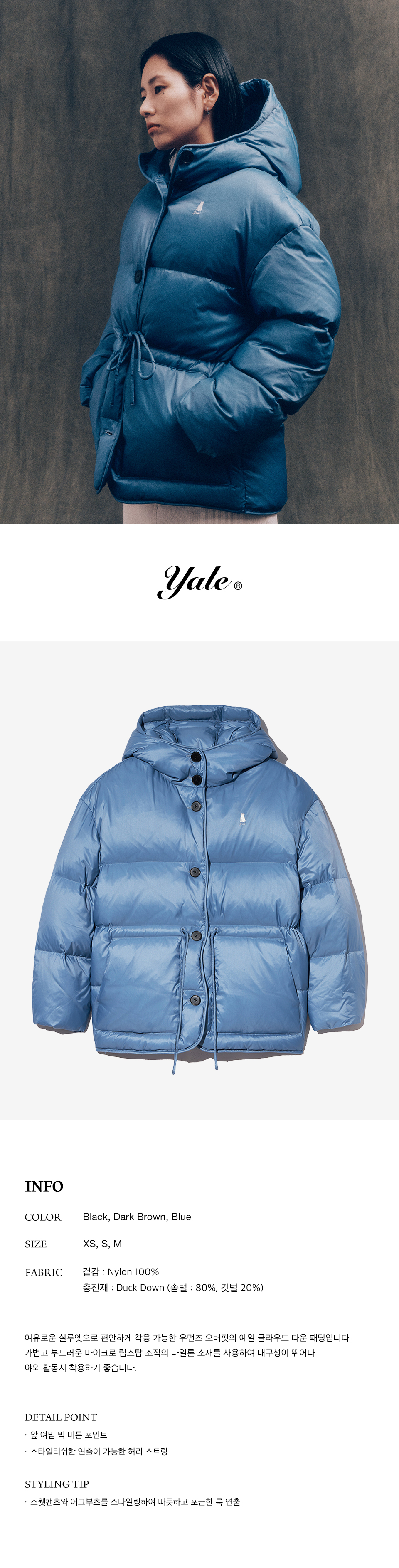 예일 웨이스트 스트링 클라우드 다운 패딩_블루