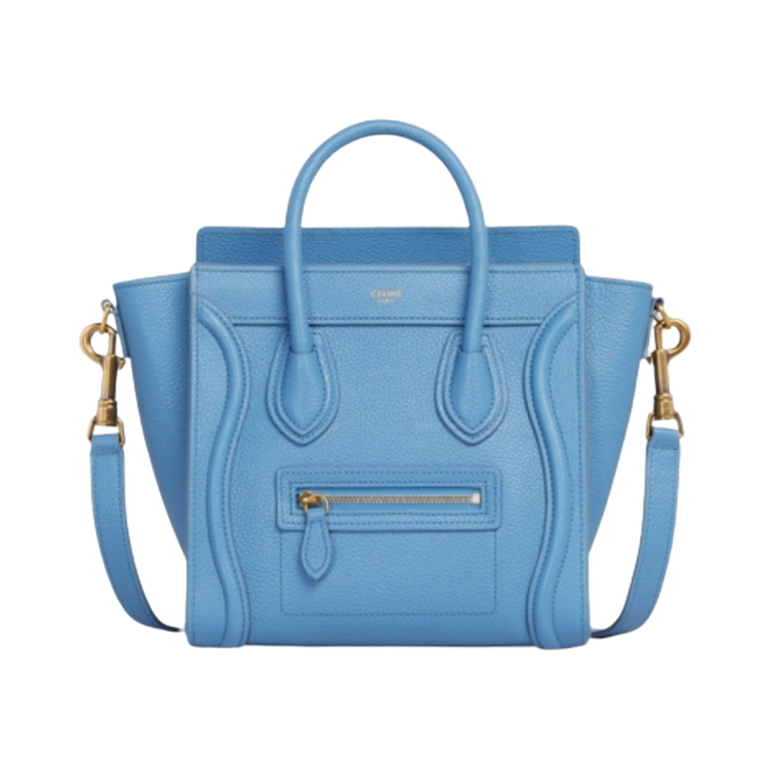 Celine Nano Luggage Bag in Drummed Calfskin Azure