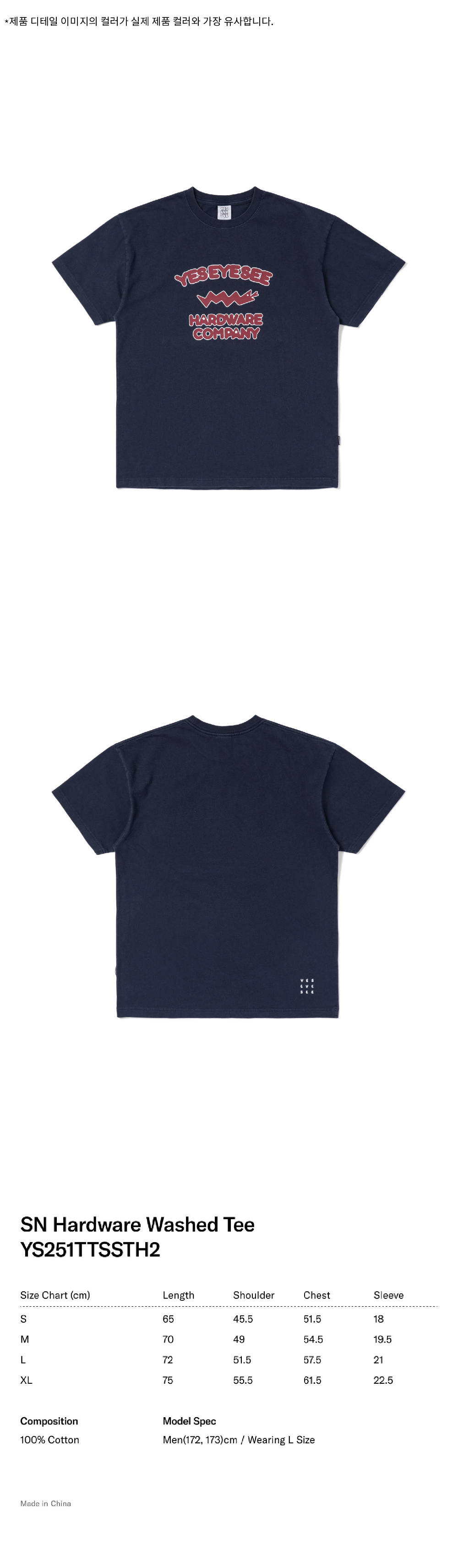 예스아이씨 에스엔 하드웨어 워시드 티 네이비