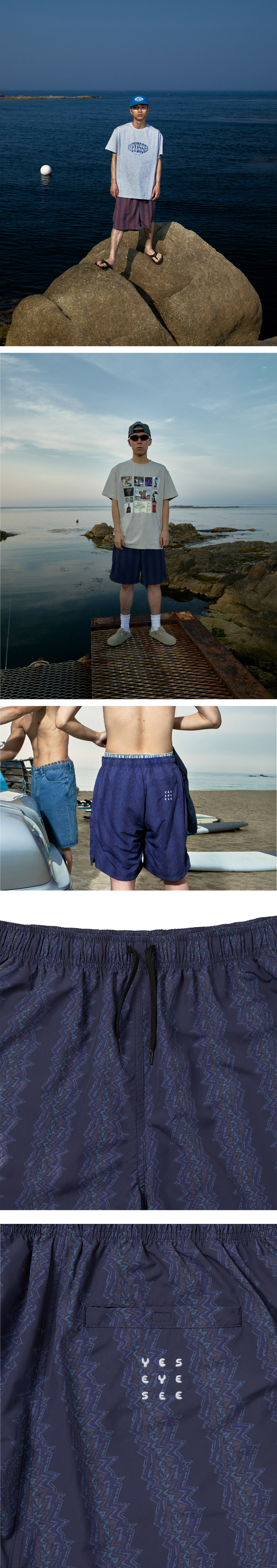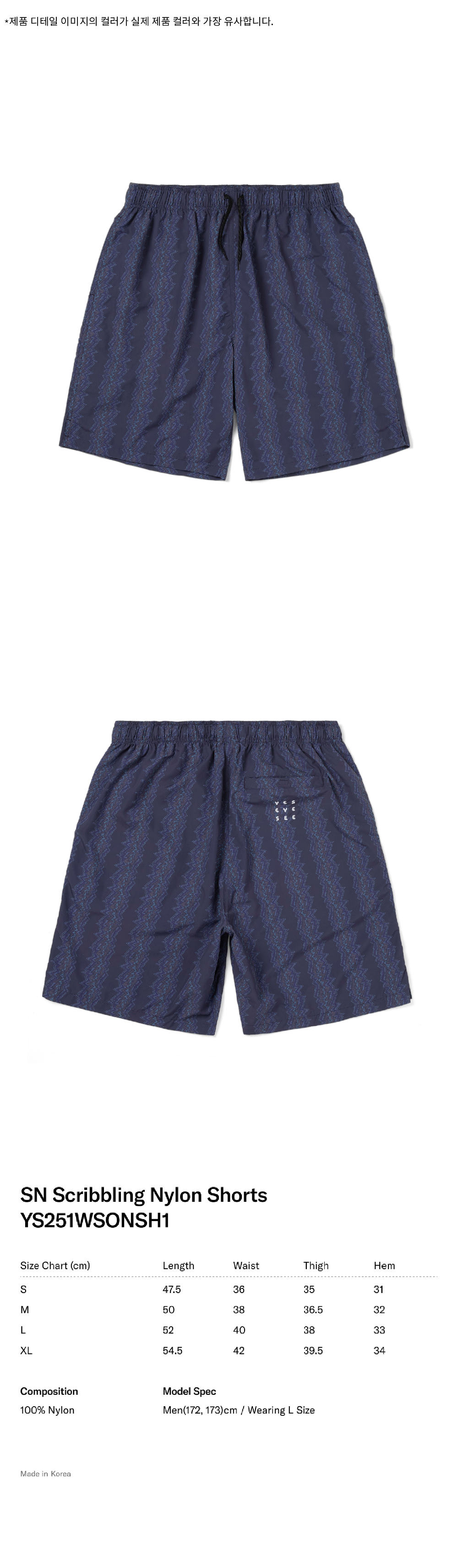 예스아이씨 에스엔 스크리블링 나일론 쇼츠 네이비