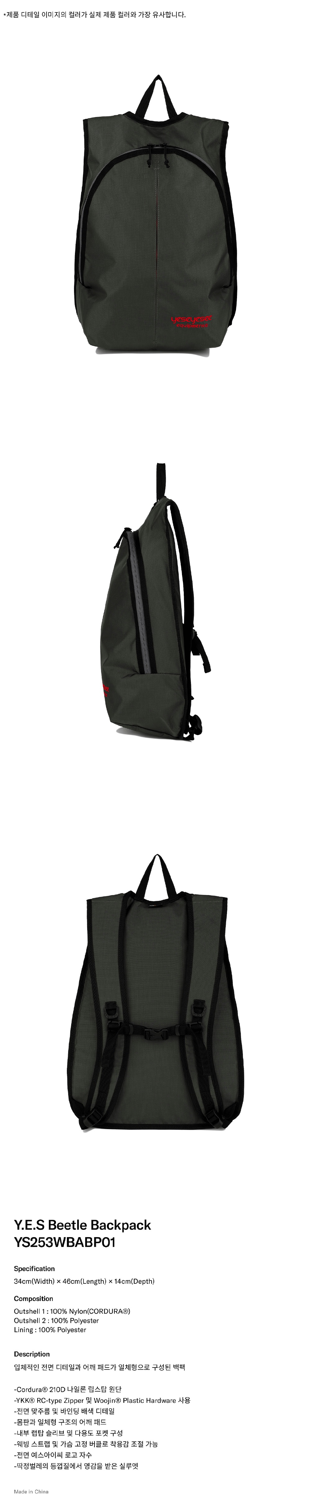 예스아이씨 예스 비틀 백팩 차콜