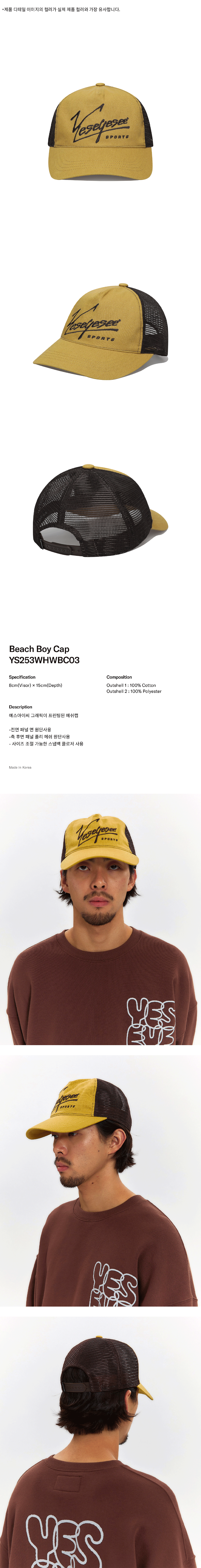 예스아이씨 비치 보이 캡 머스타드